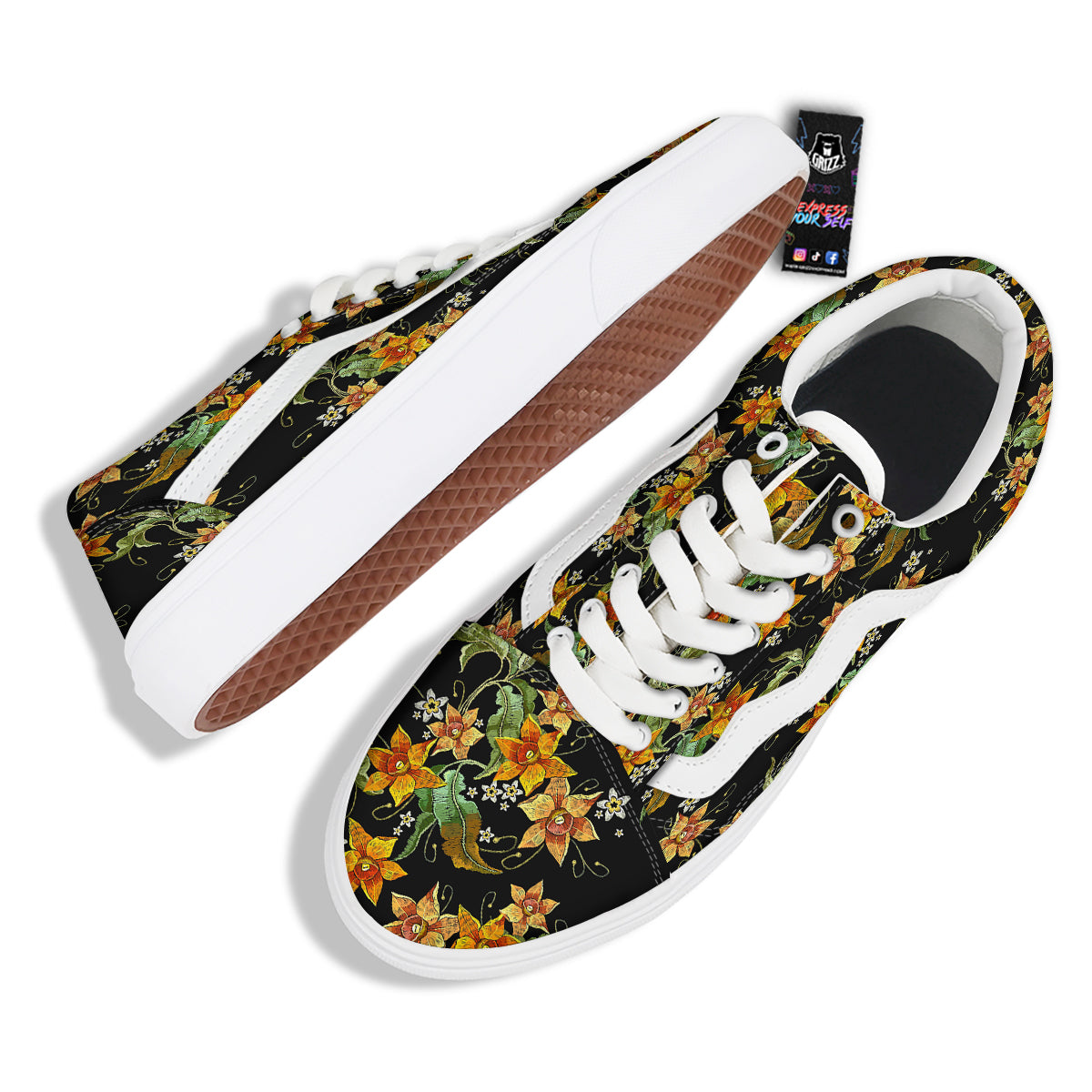 Flower Daffodil Vintage Print Pattern Skate Shoes-grizzshopFlower Daffodil Vintage Print Pattern Skate Shoes-grizzshop