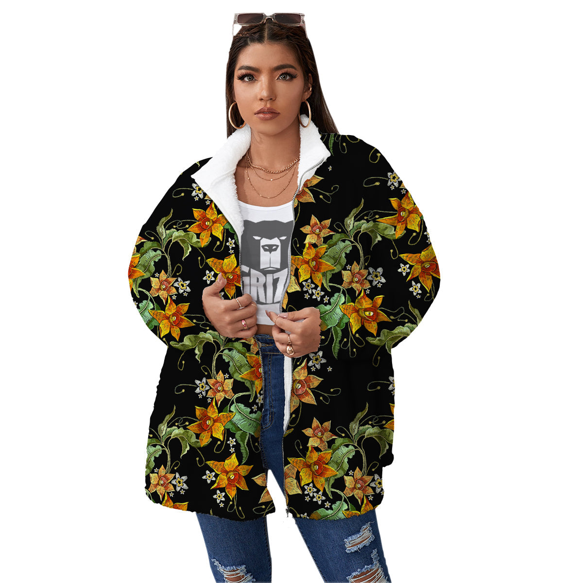 Flower Daffodil Vintage Print Pattern Women's Sherpa Jacket-grizzshopFlower Daffodil Vintage Print Pattern Women's Sherpa Jacket-grizzshop