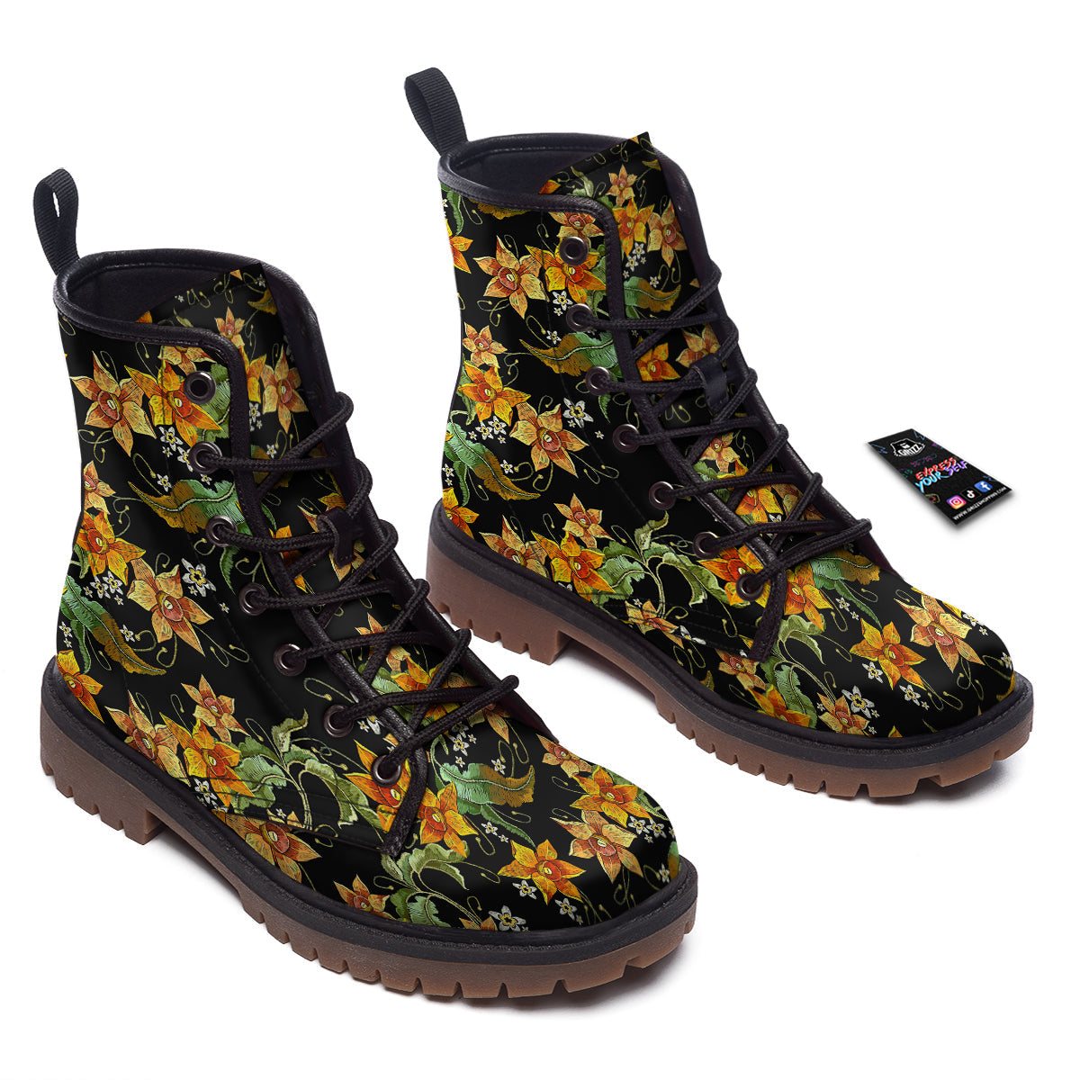 Flower Daffodil Vintage Print Pattern Work Boots-grizzshopFlower Daffodil Vintage Print Pattern Work Boots-grizzshop