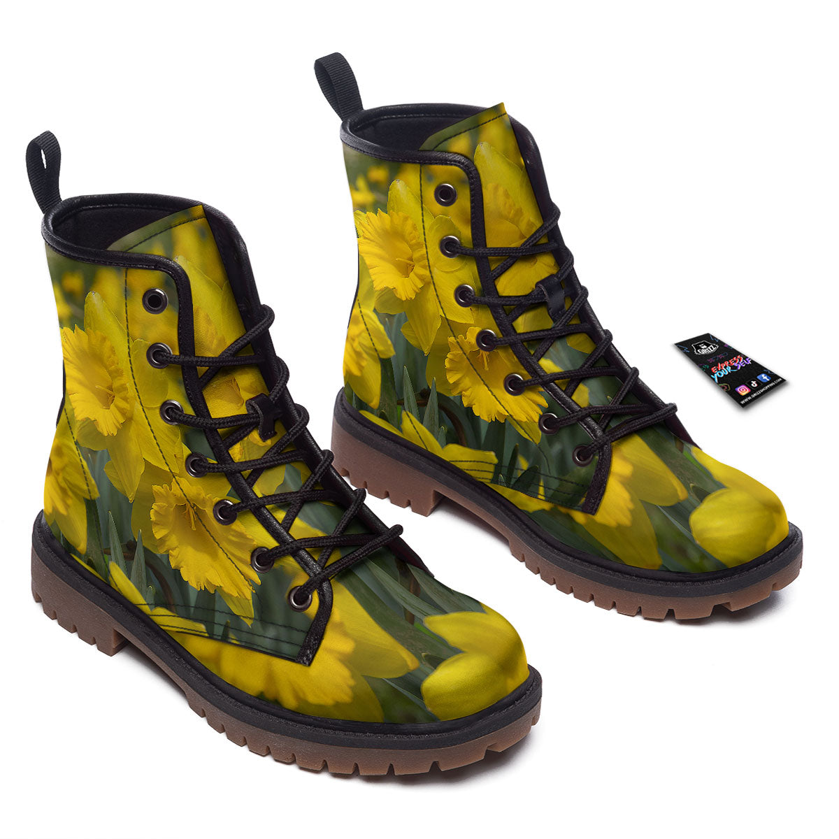 Flower Spring Daffodil Print Pattern Work Boots-grizzshopFlower Spring Daffodil Print Pattern Work Boots-grizzshop