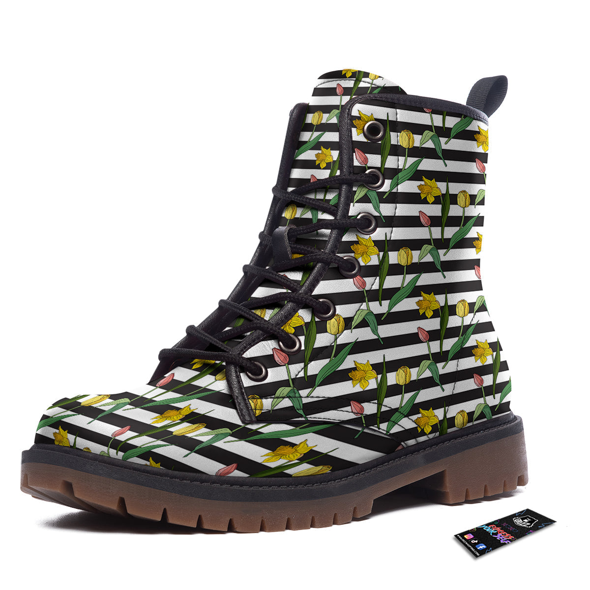 Striped Daffodil Yellow Print Pattern Work Boots-grizzshopStriped Daffodil Yellow Print Pattern Work Boots-grizzshop