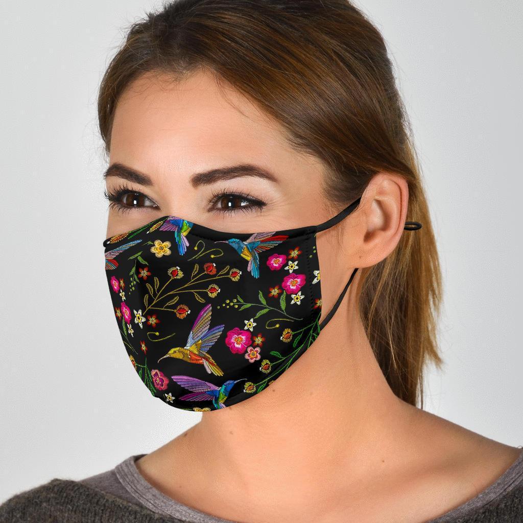 Hummingbird White Floral Face Mask-grizzshopHummingbird White Floral Face Mask-grizzshop