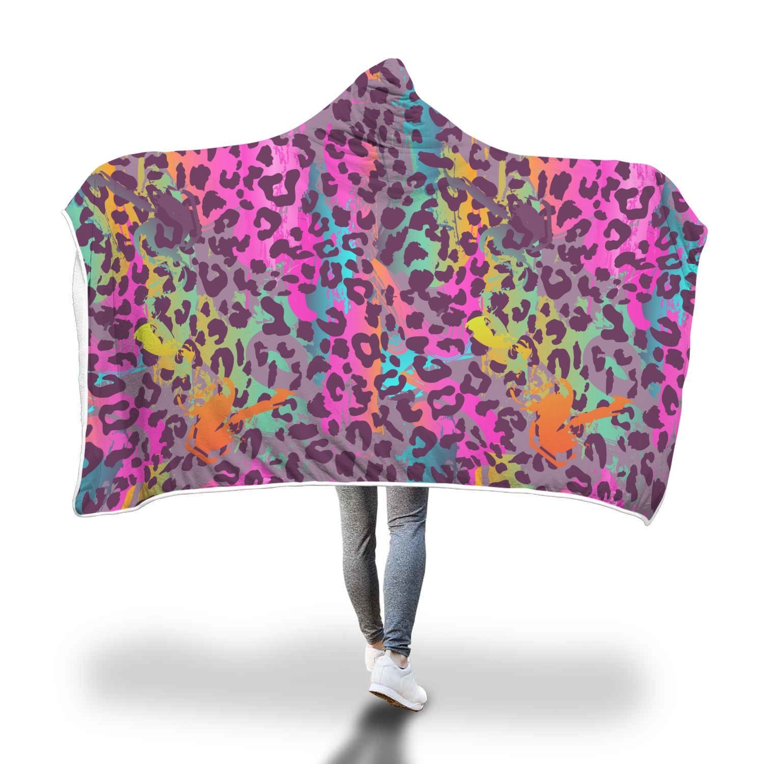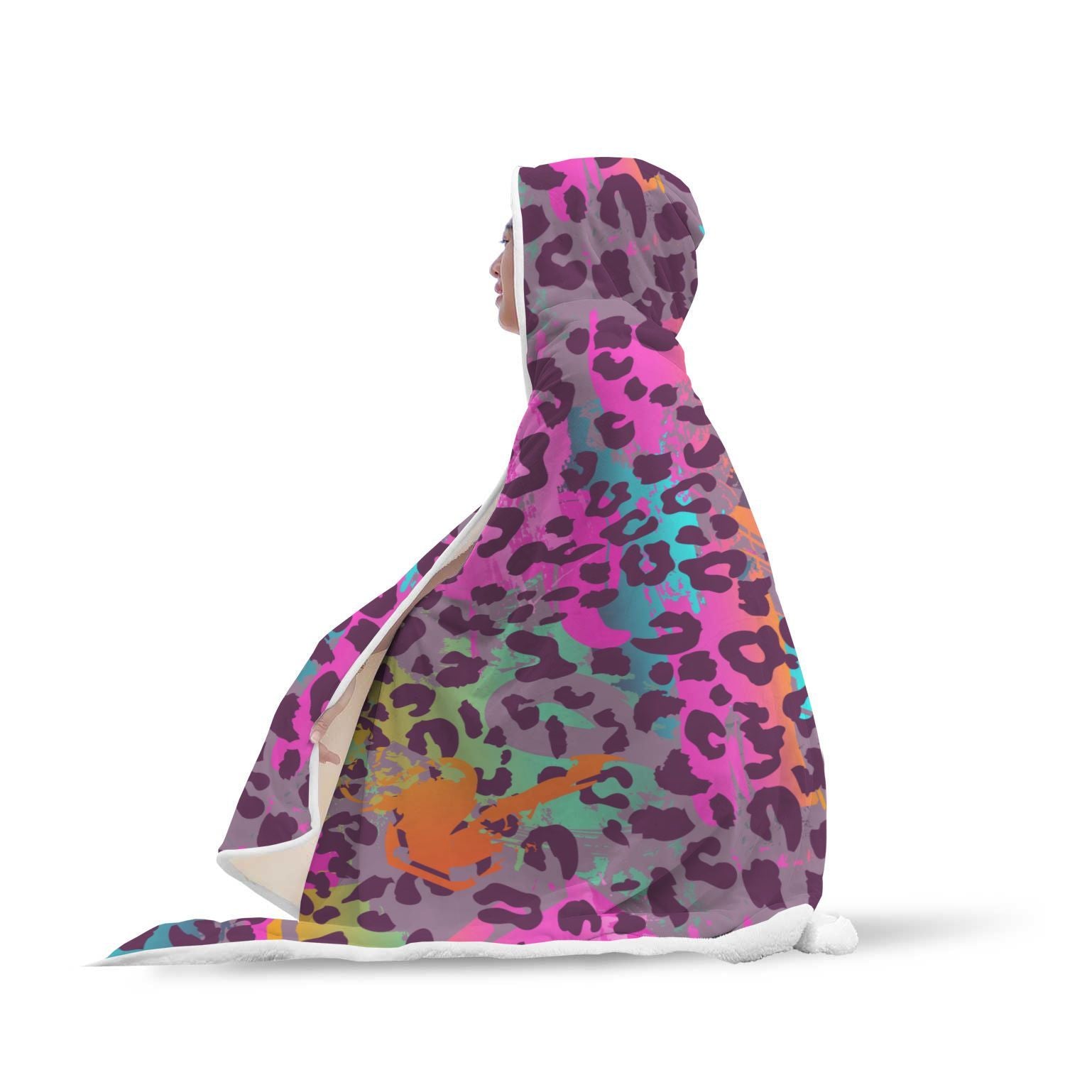 Rainbow Cheetah Leopard Pattern Print Hooded Blanket-grizzshopRainbow Cheetah Leopard Pattern Print Hooded Blanket-grizzshop