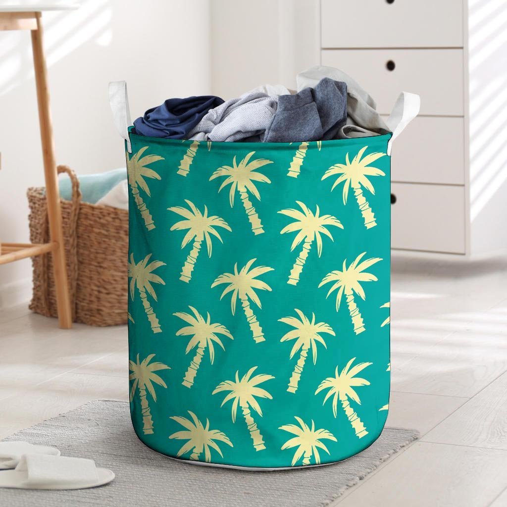 Green Palm Tree Hawaiin Print Laundry Basket-grizzshopGreen Palm Tree Hawaiin Print Laundry Basket-grizzshop