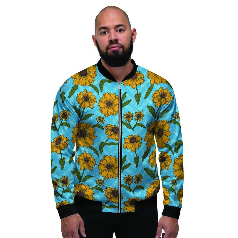 Blue Zigzag Sunflower Men's Bomber Jacket-grizzshopBlue Zigzag Sunflower Men's Bomber Jacket-grizzshop