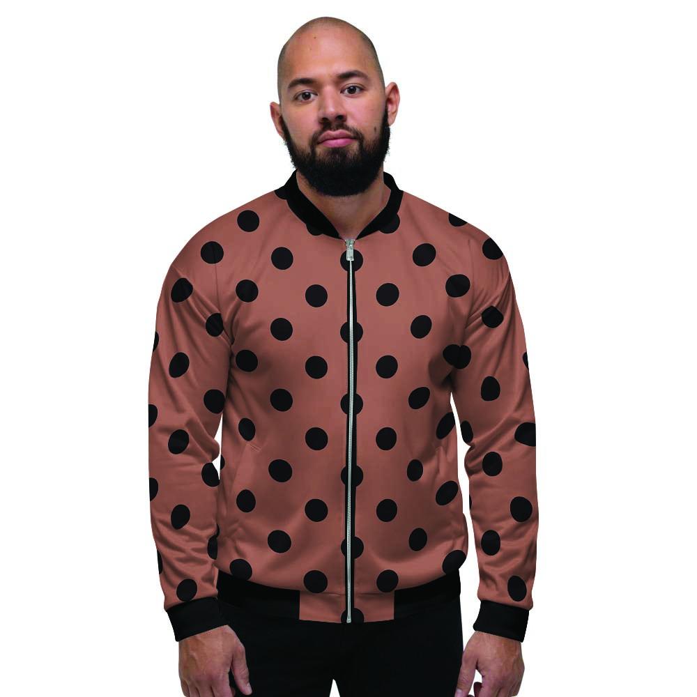 Brown And Black Polka Dot Men's Bomber Jacket-grizzshopBrown And Black Polka Dot Men's Bomber Jacket-grizzshop