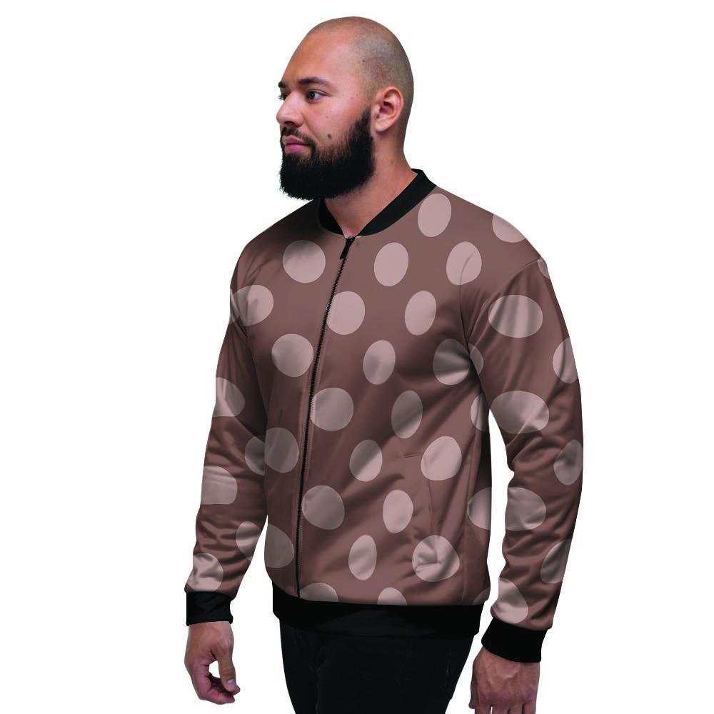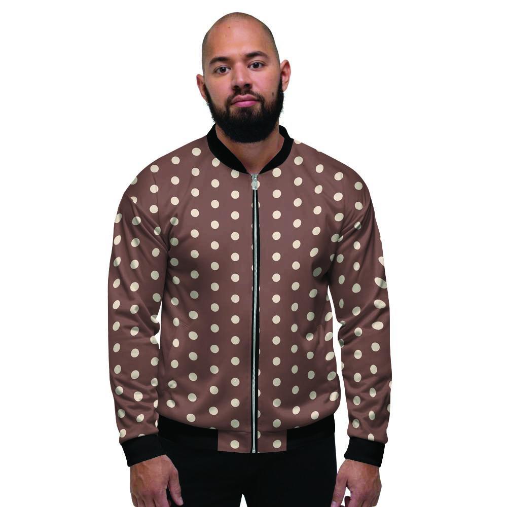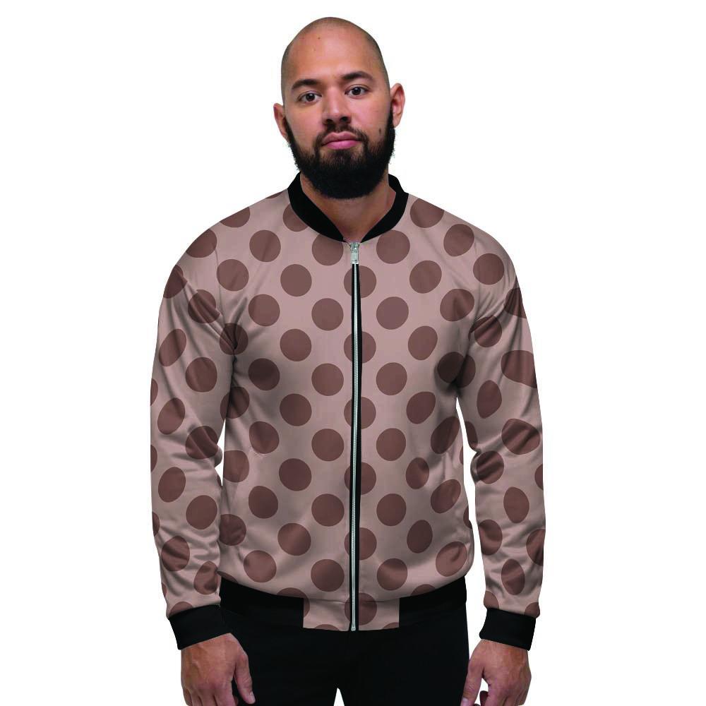 Brown And Cream Polka Dot Men's Bomber Jacket-grizzshopBrown And Cream Polka Dot Men's Bomber Jacket-grizzshop