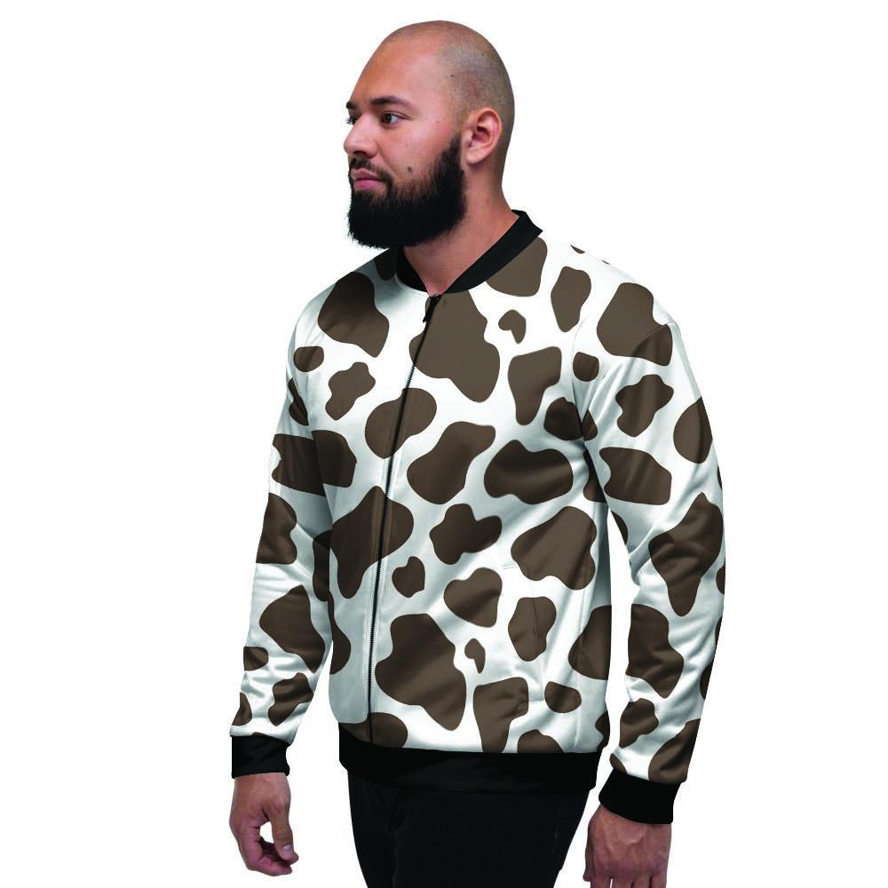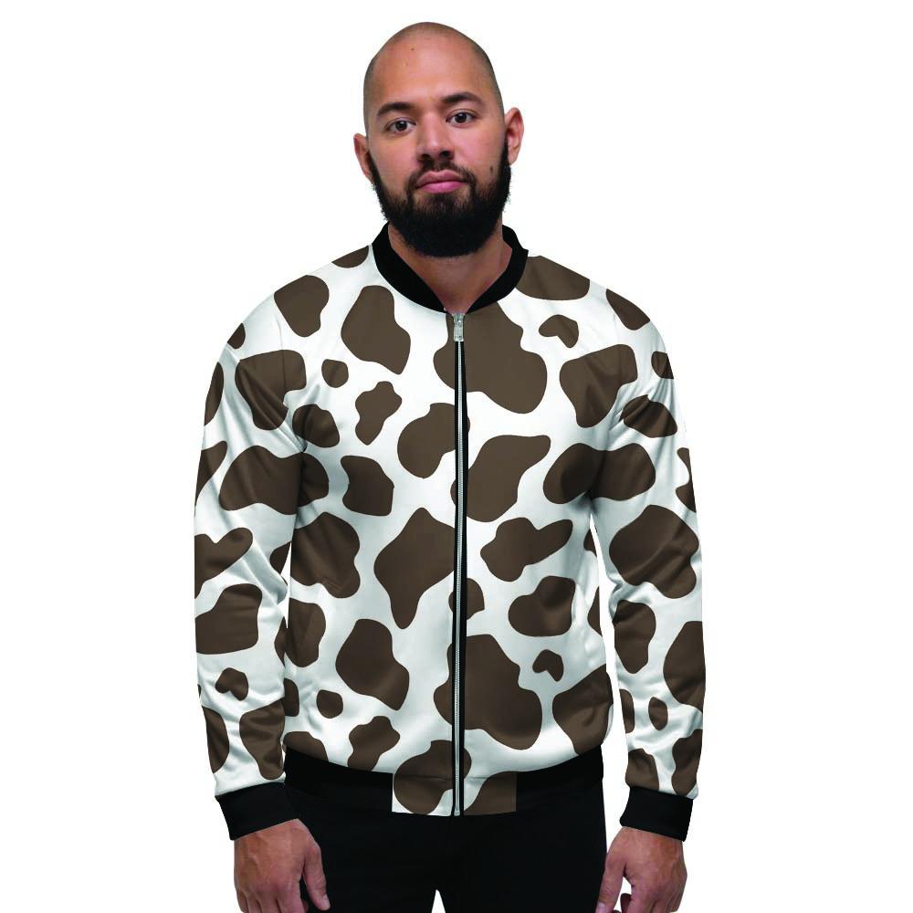 Brown And White Cow Print Men's Bomber Jacket-grizzshopBrown And White Cow Print Men's Bomber Jacket-grizzshop