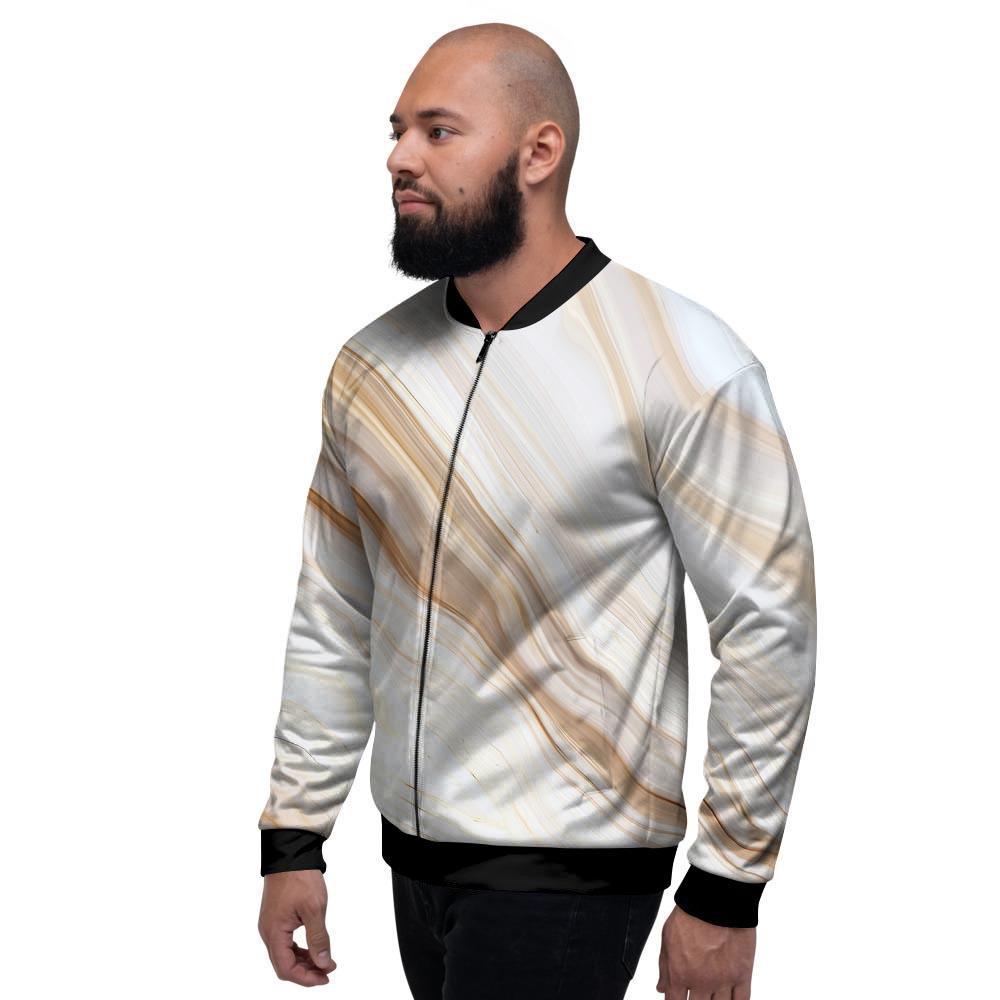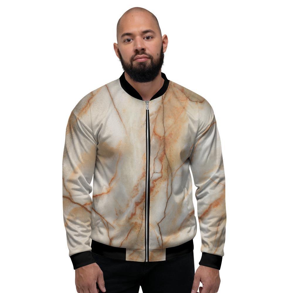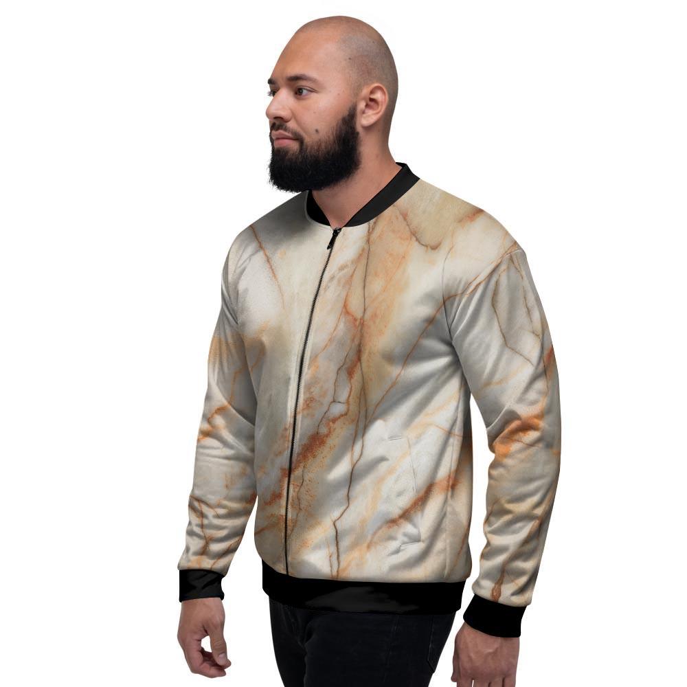 Brown Beige Marble Men's Bomber Jacket-grizzshopBrown Beige Marble Men's Bomber Jacket-grizzshop