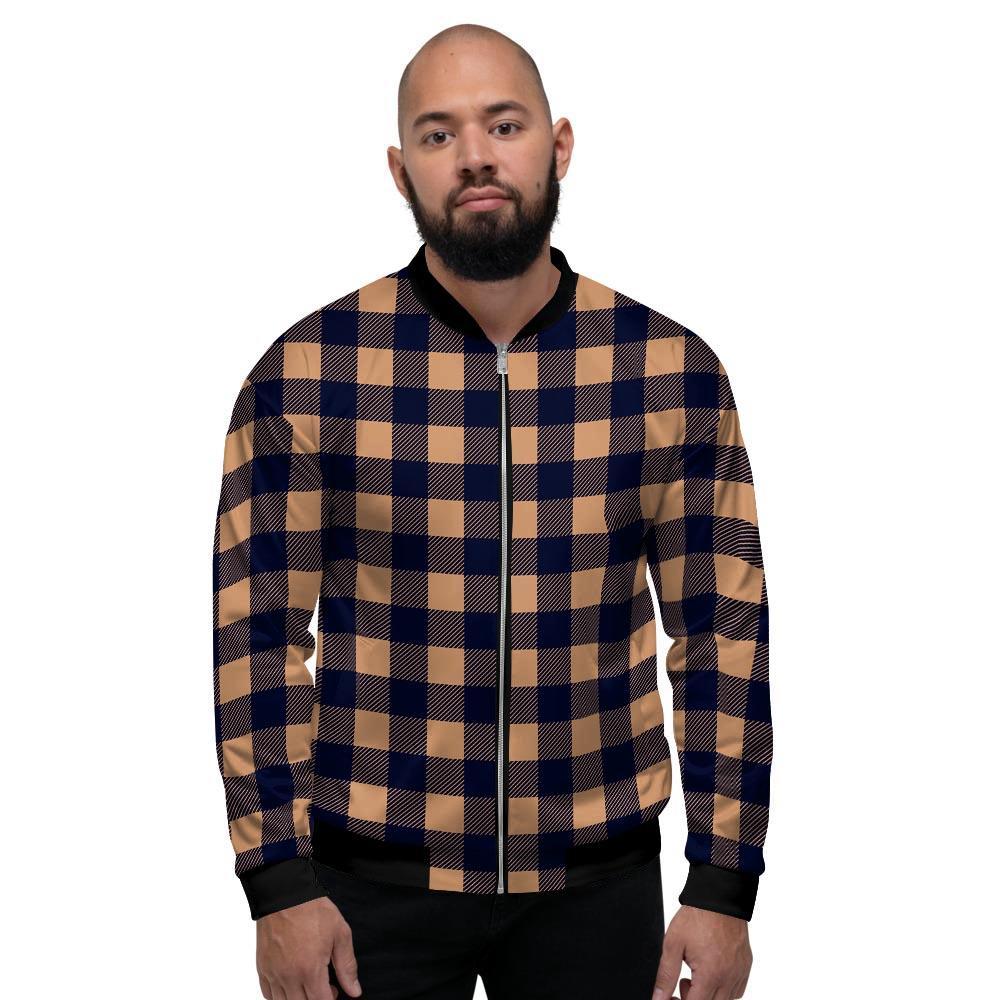 Brown Plaid Men's Bomber Jacket-grizzshopBrown Plaid Men's Bomber Jacket-grizzshop