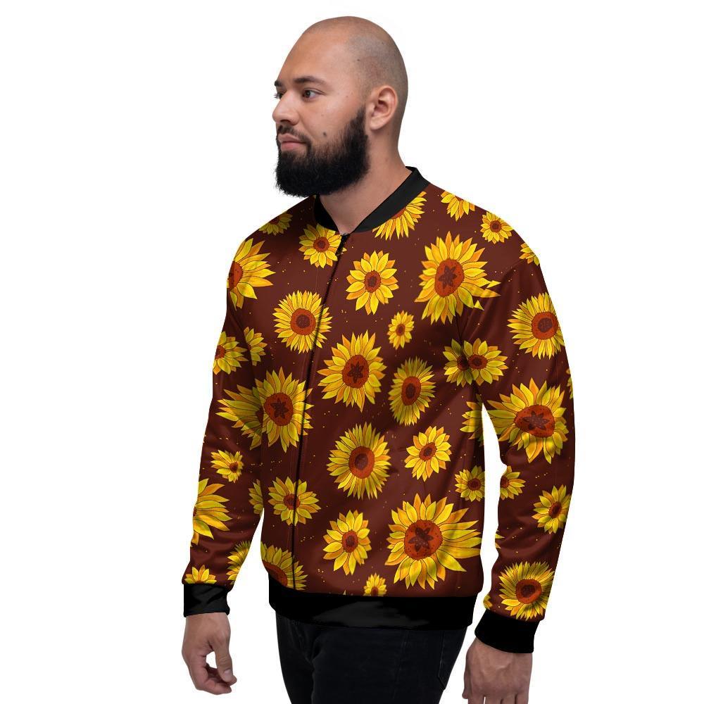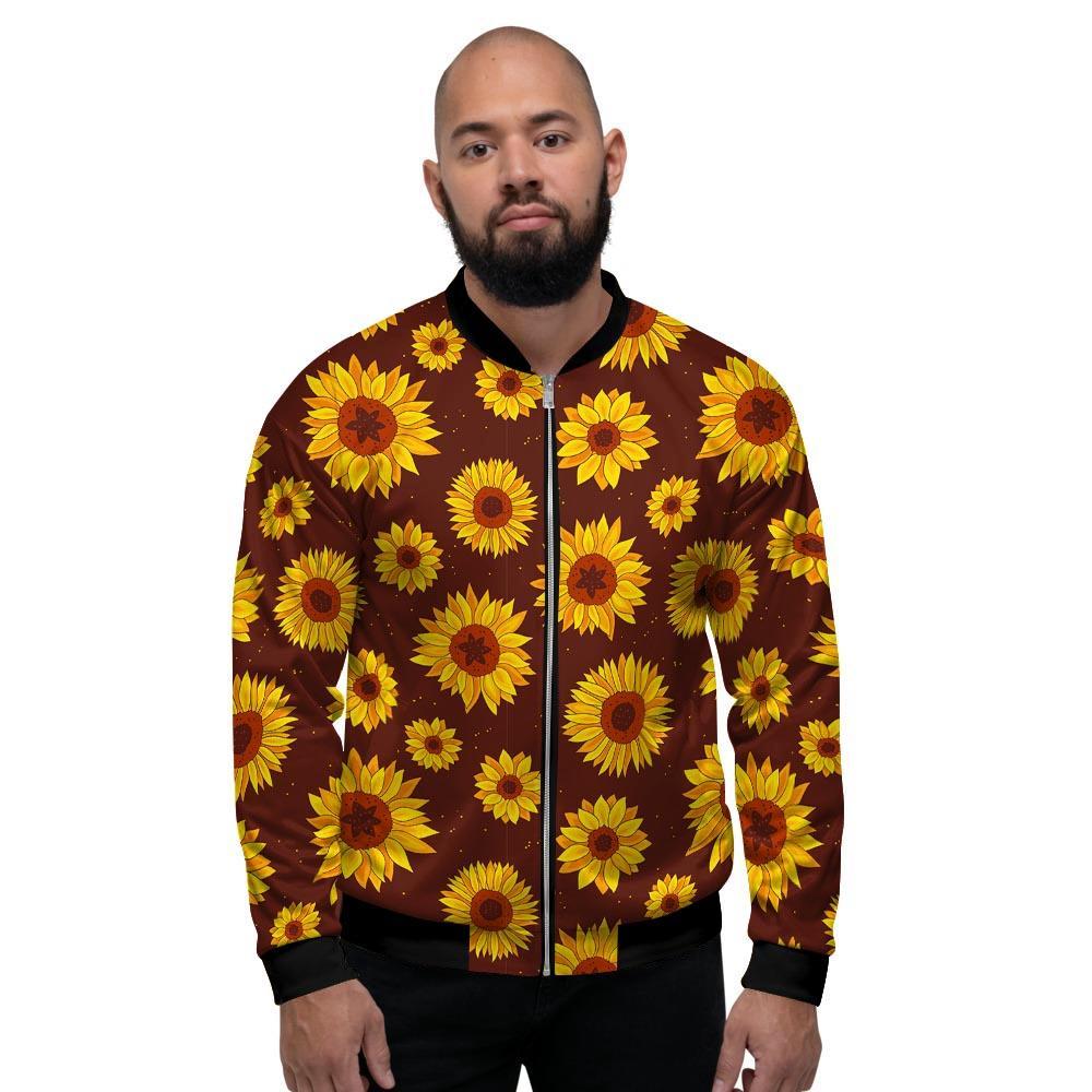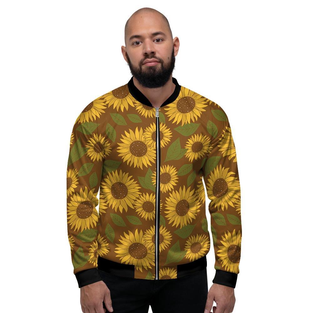 Brown Sunflower Men's Bomber Jacket-grizzshopBrown Sunflower Men's Bomber Jacket-grizzshop
