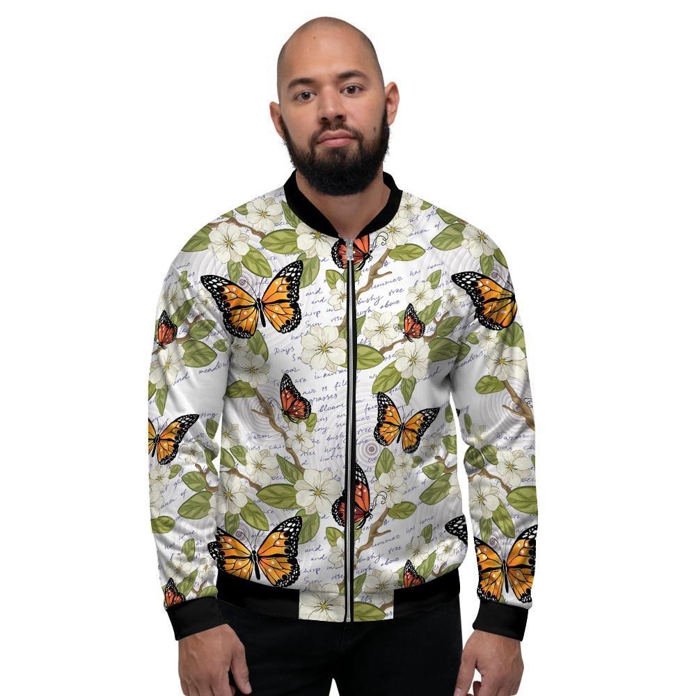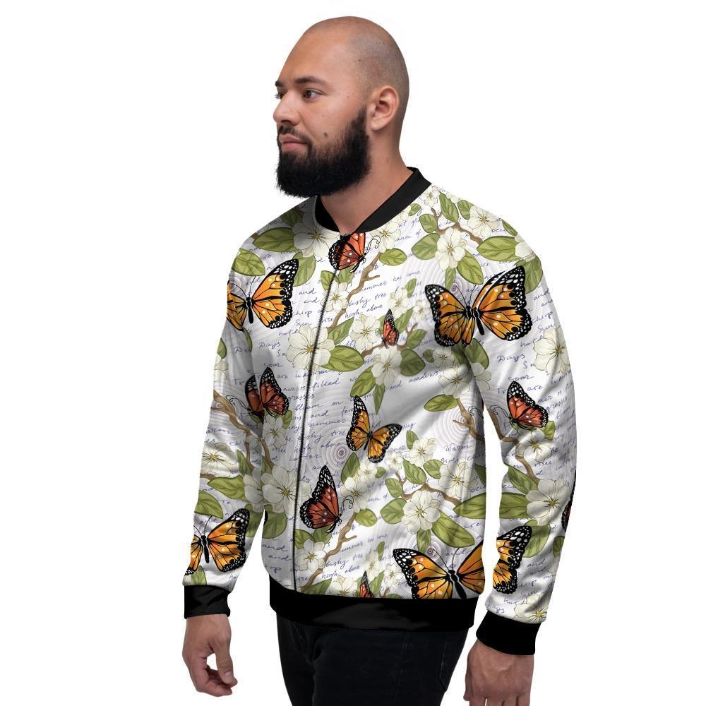 Butterfly Floral Print Men's Bomber Jacket-grizzshopButterfly Floral Print Men's Bomber Jacket-grizzshop