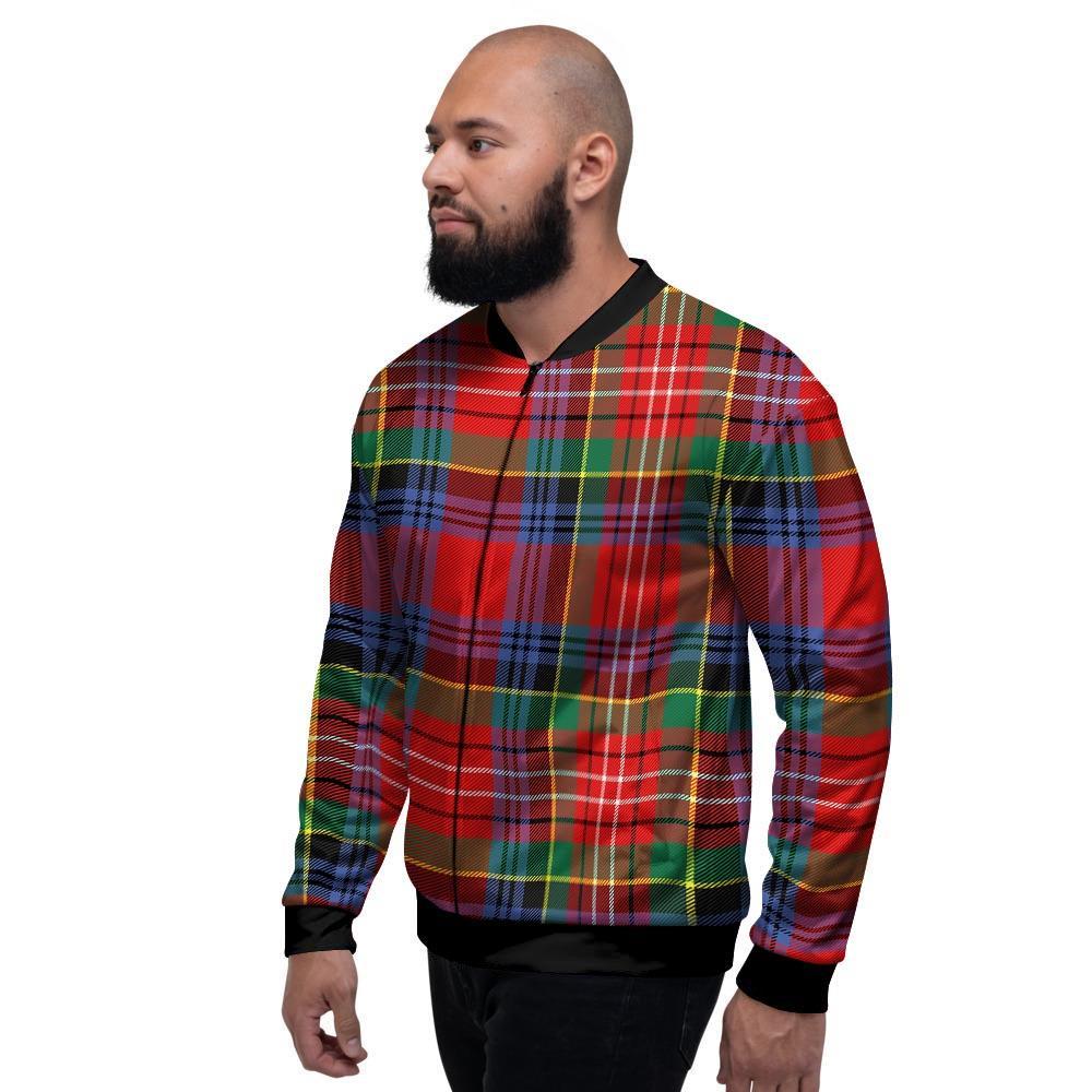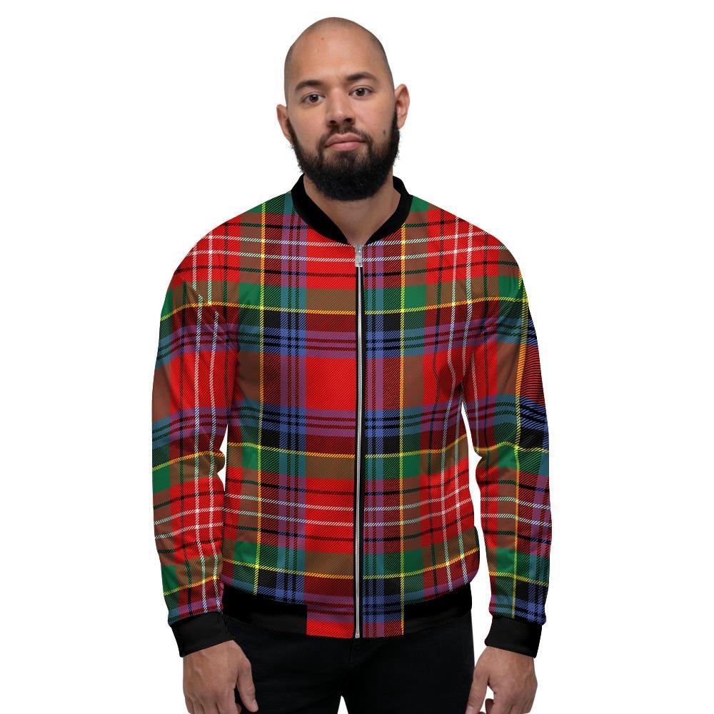 Caledonia Red Plaid Tartan Men's Bomber Jacket-grizzshopCaledonia Red Plaid Tartan Men's Bomber Jacket-grizzshop