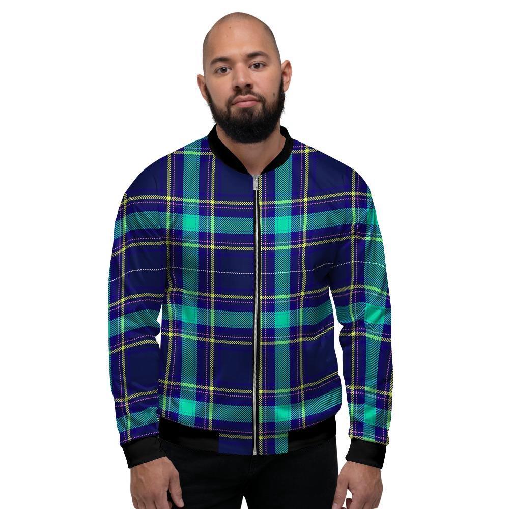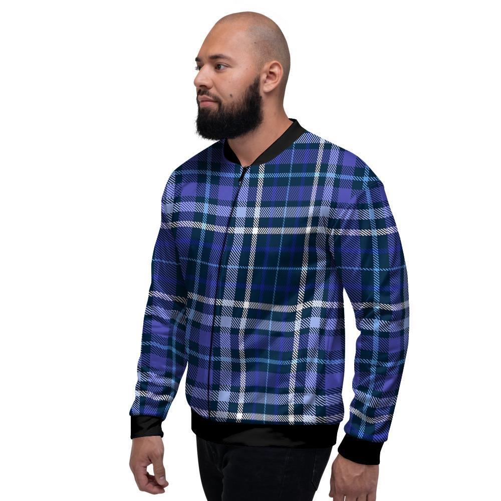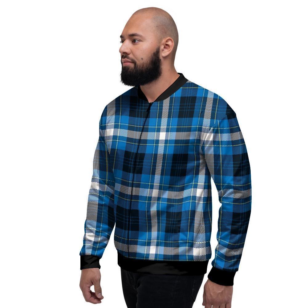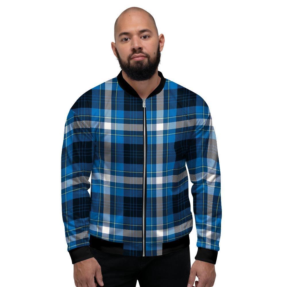 Blue Plaid Tartan Scottish Men's Bomber Jacket-grizzshopBlue Plaid Tartan Scottish Men's Bomber Jacket-grizzshop