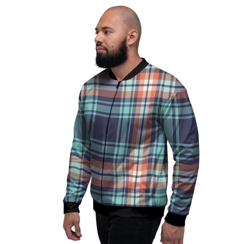 Blue Tartan Plaid Men's Bomber Jacket-grizzshopBlue Tartan Plaid Men's Bomber Jacket-grizzshop