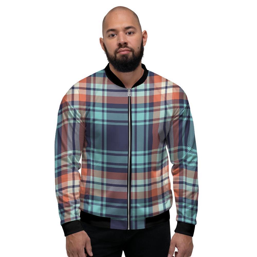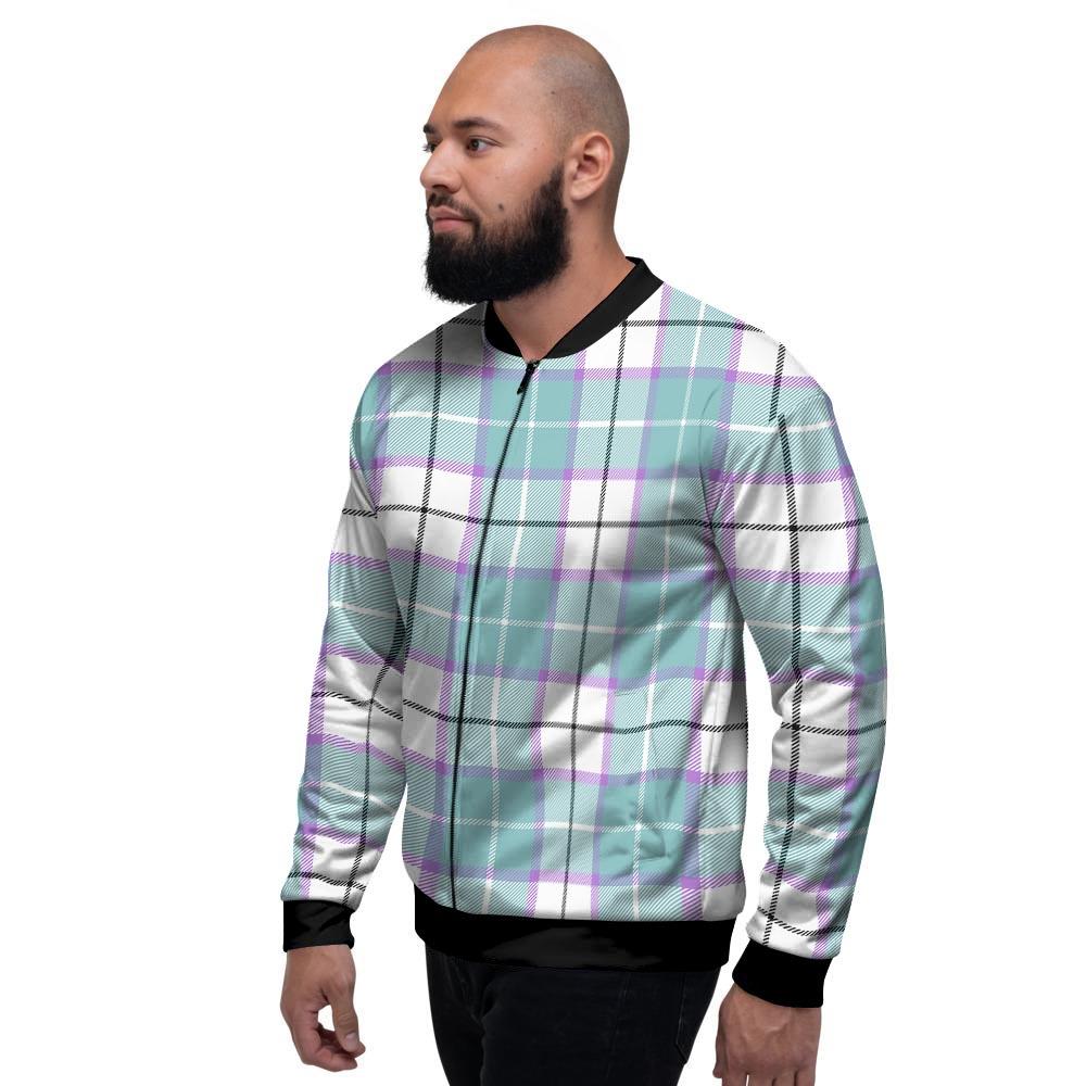 Blue Plaid Tartan Print Men's Bomber Jacket-grizzshopBlue Plaid Tartan Print Men's Bomber Jacket-grizzshop