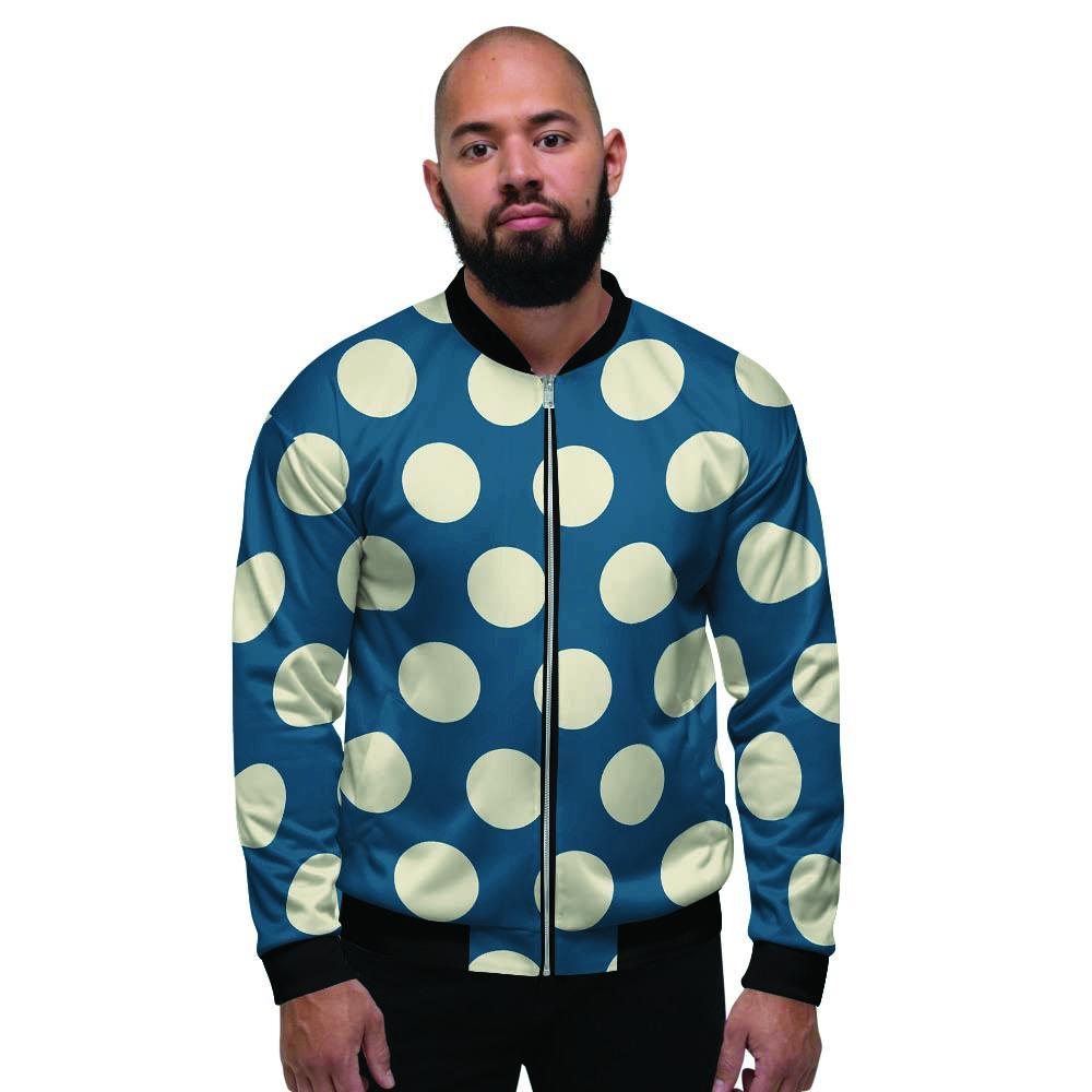 Blue Polka Dot Men's Bomber Jacket-grizzshopBlue Polka Dot Men's Bomber Jacket-grizzshop