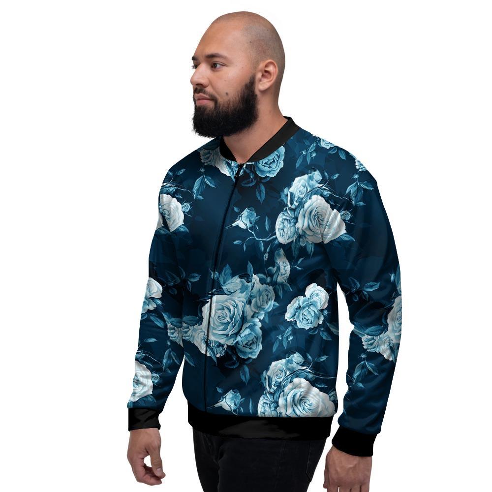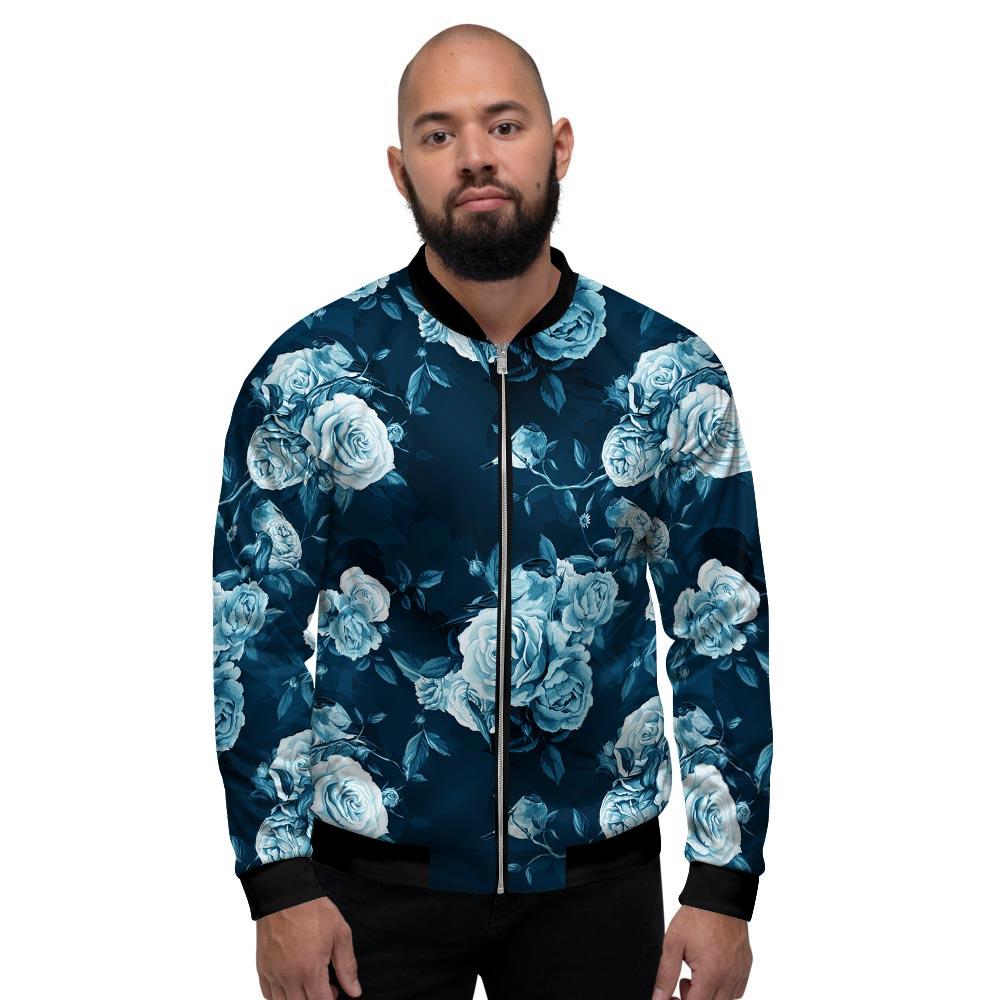 Blue Rose Floral Men's Bomber Jacket-grizzshopBlue Rose Floral Men's Bomber Jacket-grizzshop