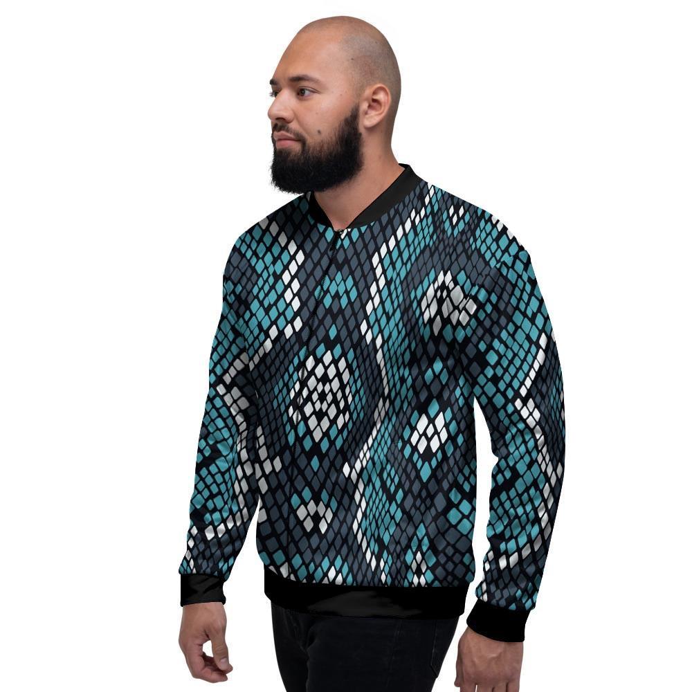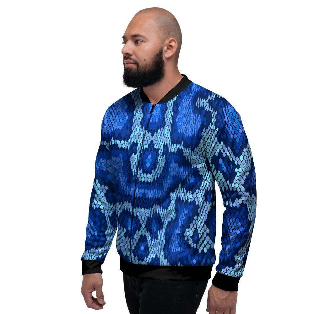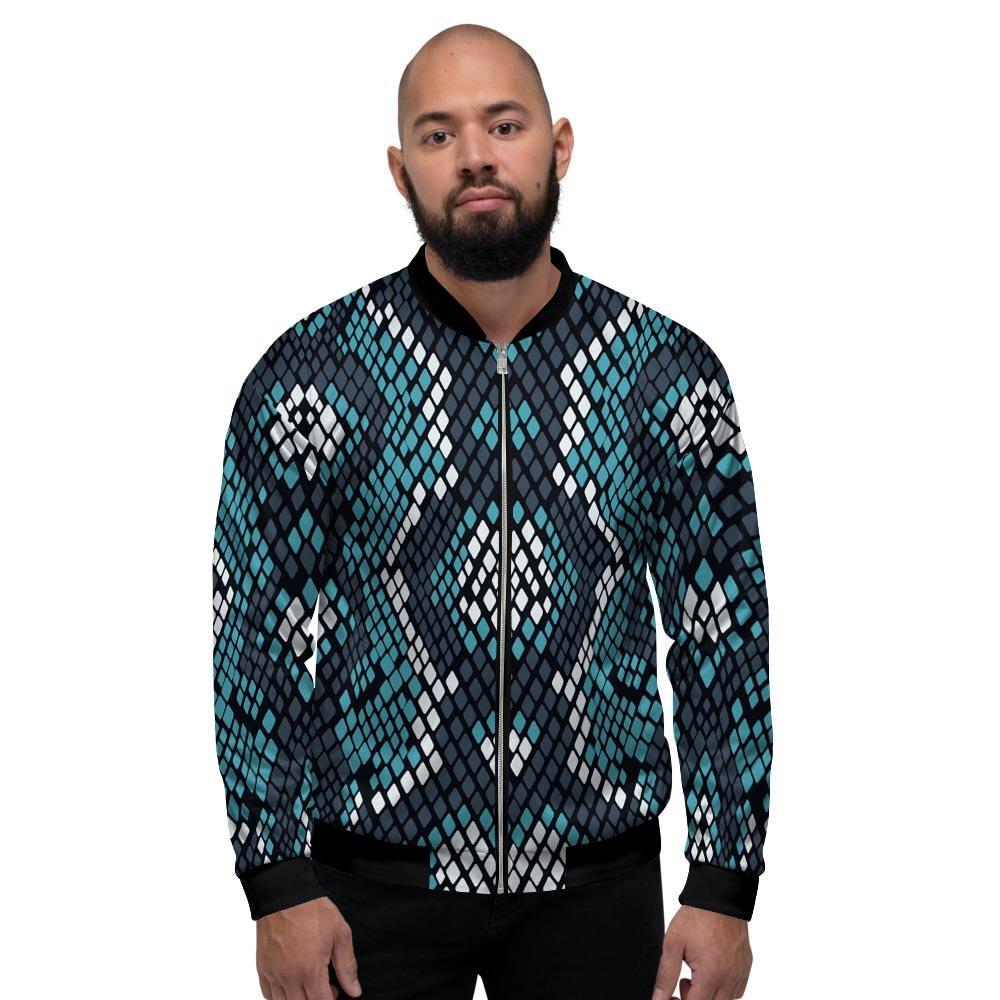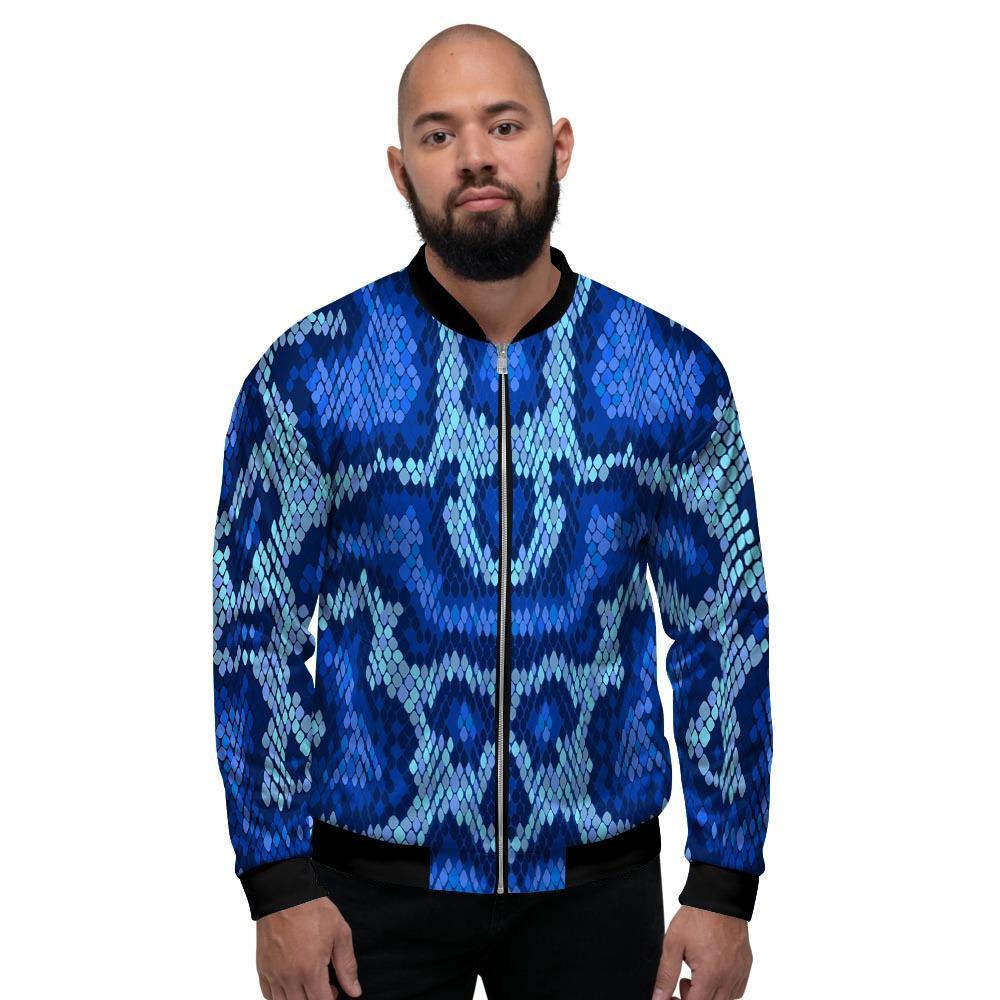 Blue Snakeskin Men's Bomber Jacket-grizzshopBlue Snakeskin Men's Bomber Jacket-grizzshop