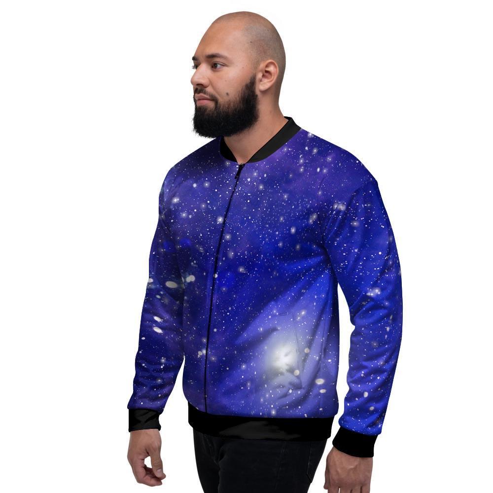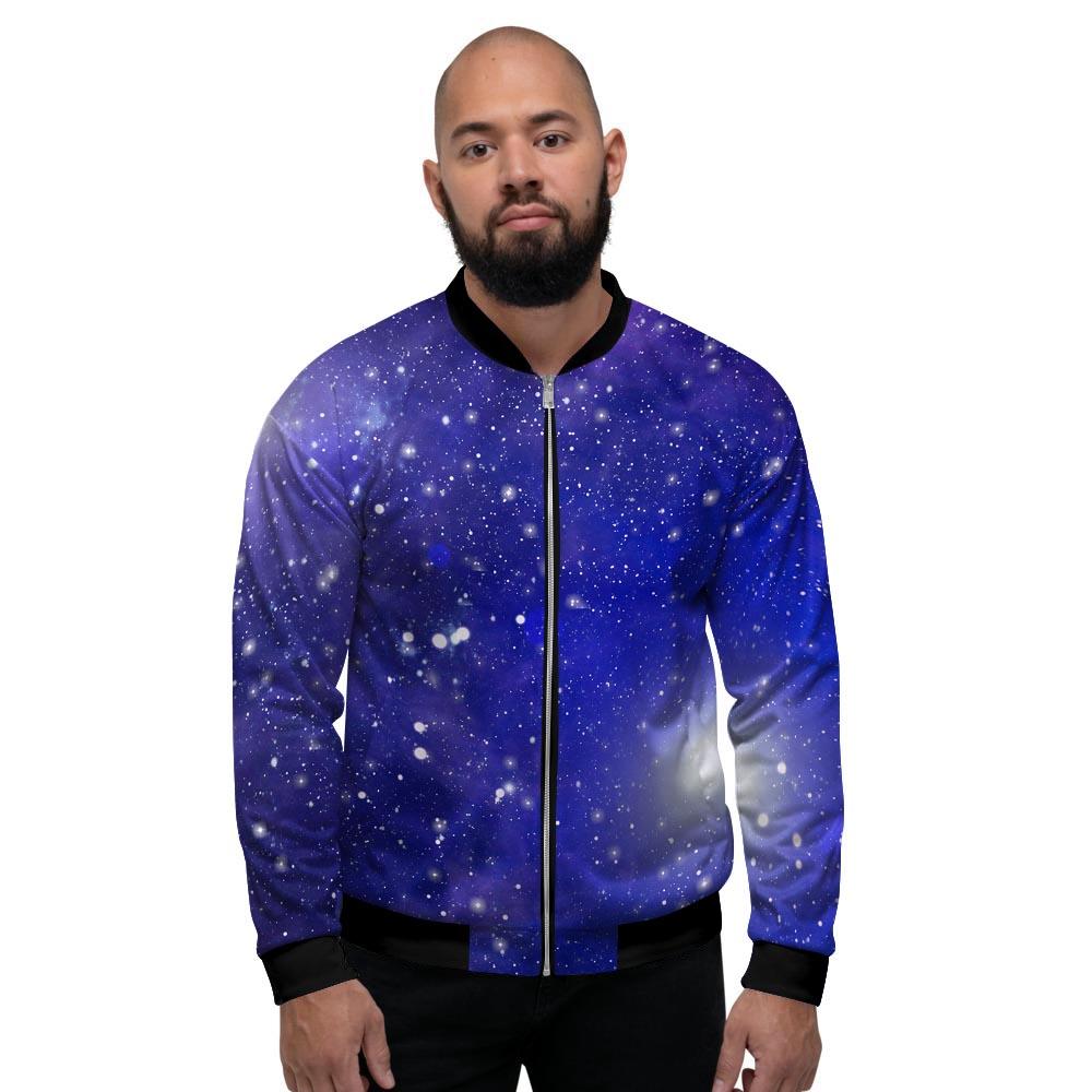 Blue Stardust Space Galaxy Men's Bomber Jacket-grizzshopBlue Stardust Space Galaxy Men's Bomber Jacket-grizzshop