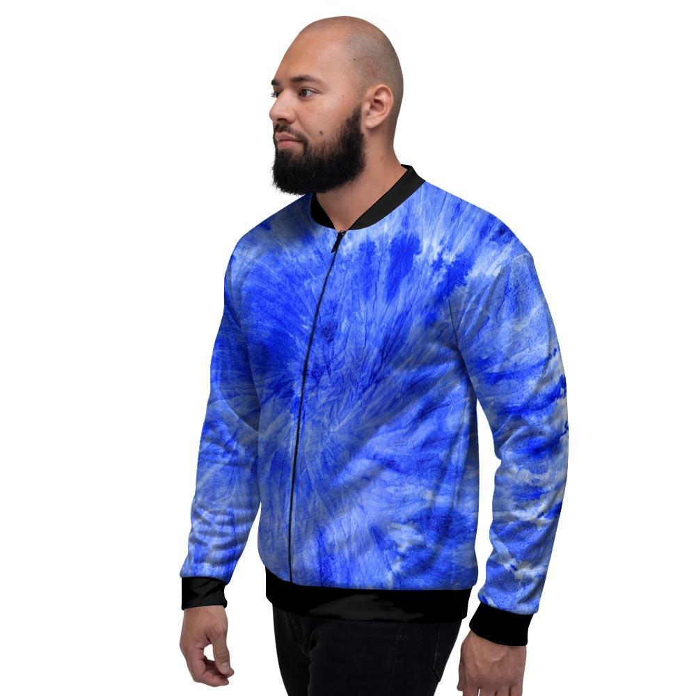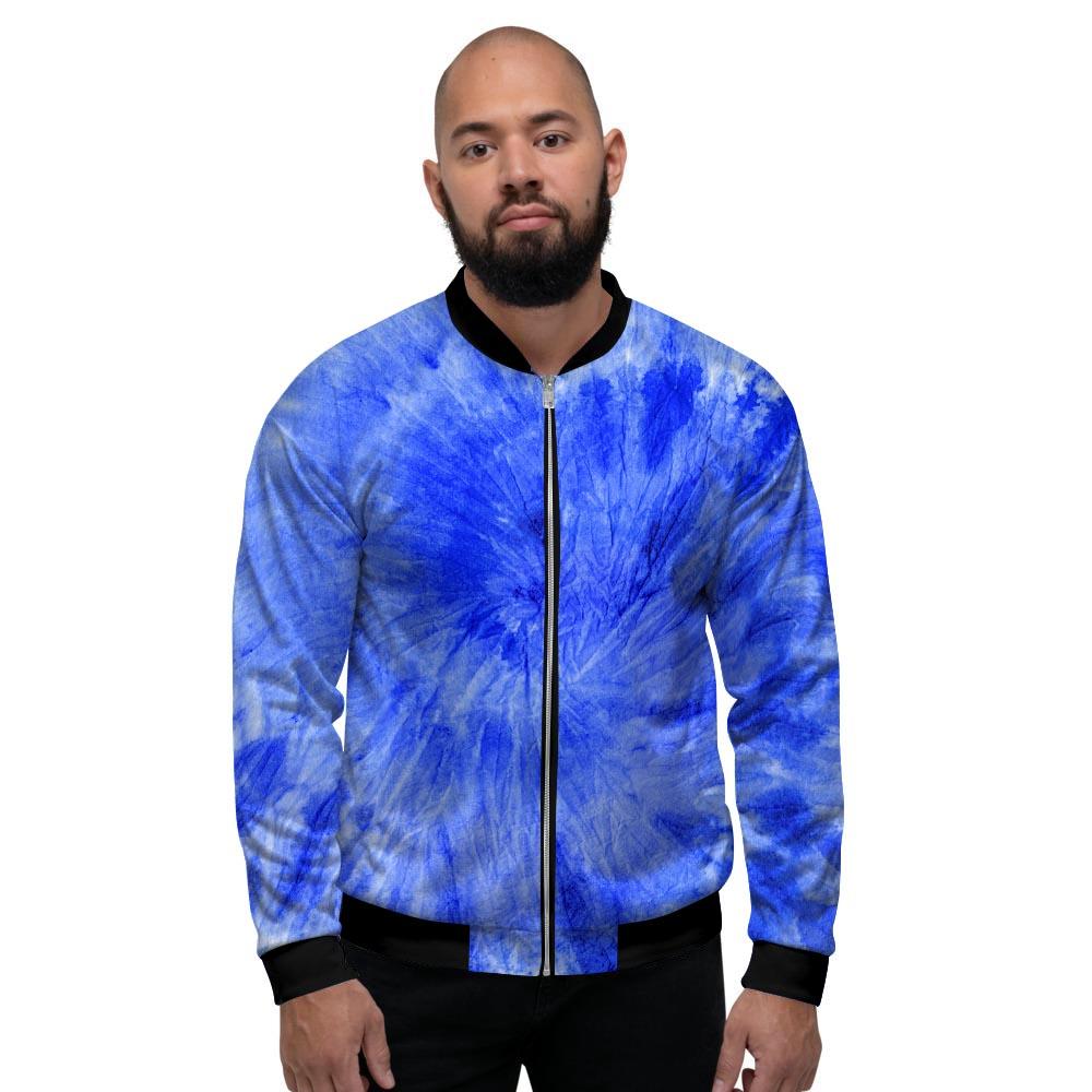 Blue Tie Dye Men's Bomber Jacket-grizzshopBlue Tie Dye Men's Bomber Jacket-grizzshop