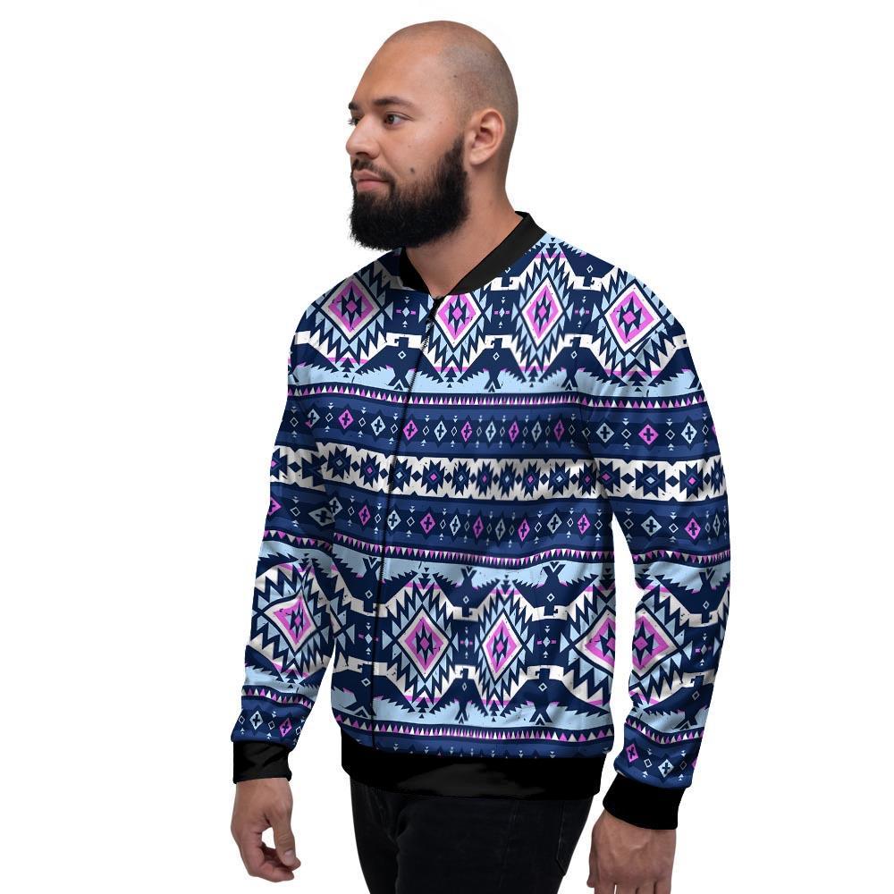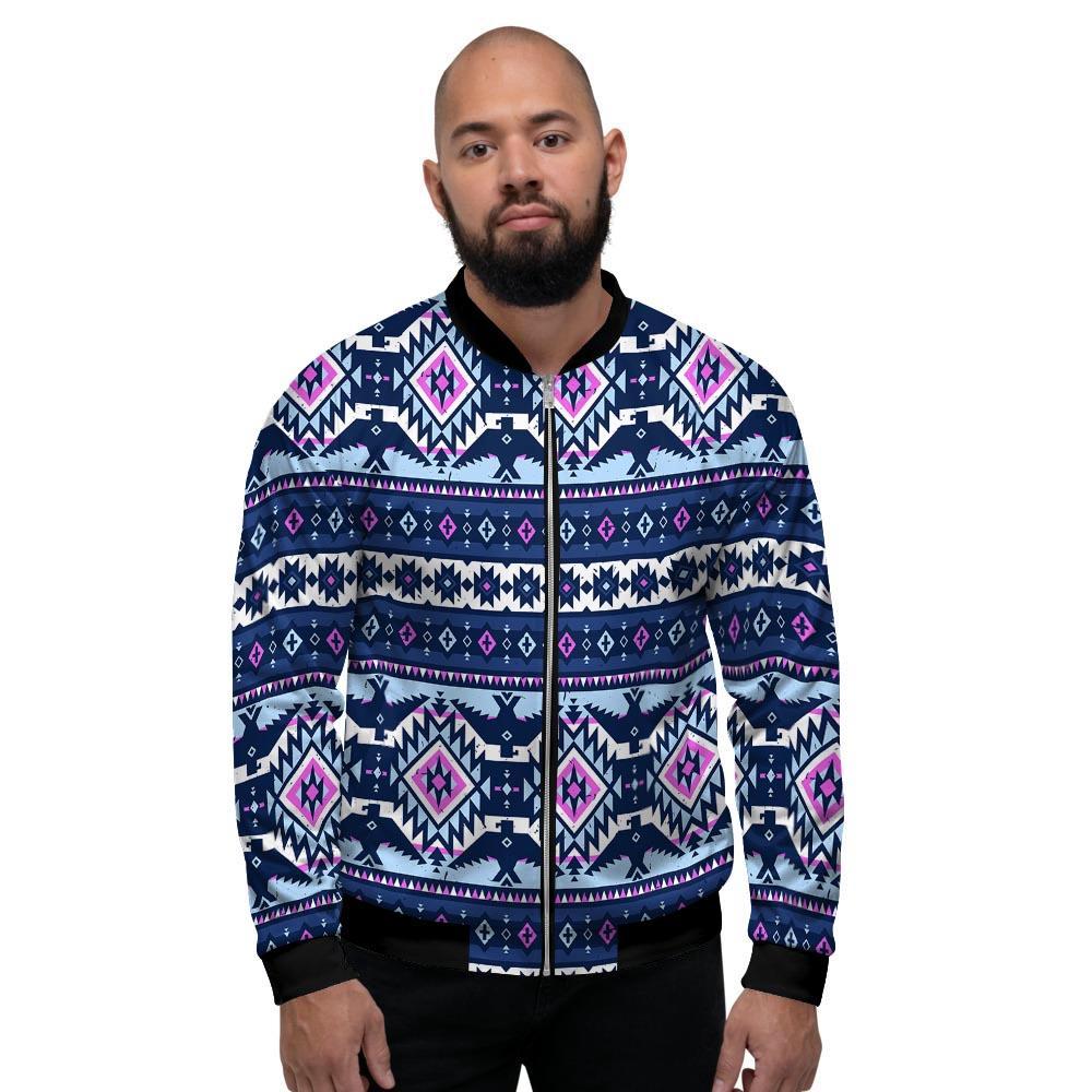 Blue Tribal Aztec Eagles Men's Bomber Jacket-grizzshopBlue Tribal Aztec Eagles Men's Bomber Jacket-grizzshop