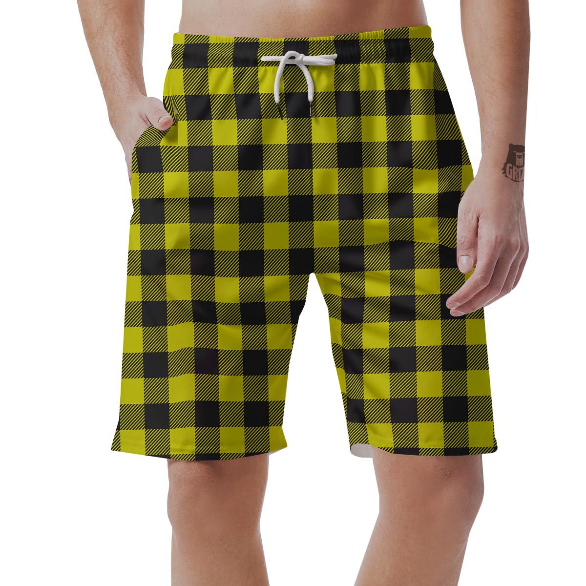 Yellow Plaid Men's Shorts-grizzshopYellow Plaid Men's Shorts-grizzshop