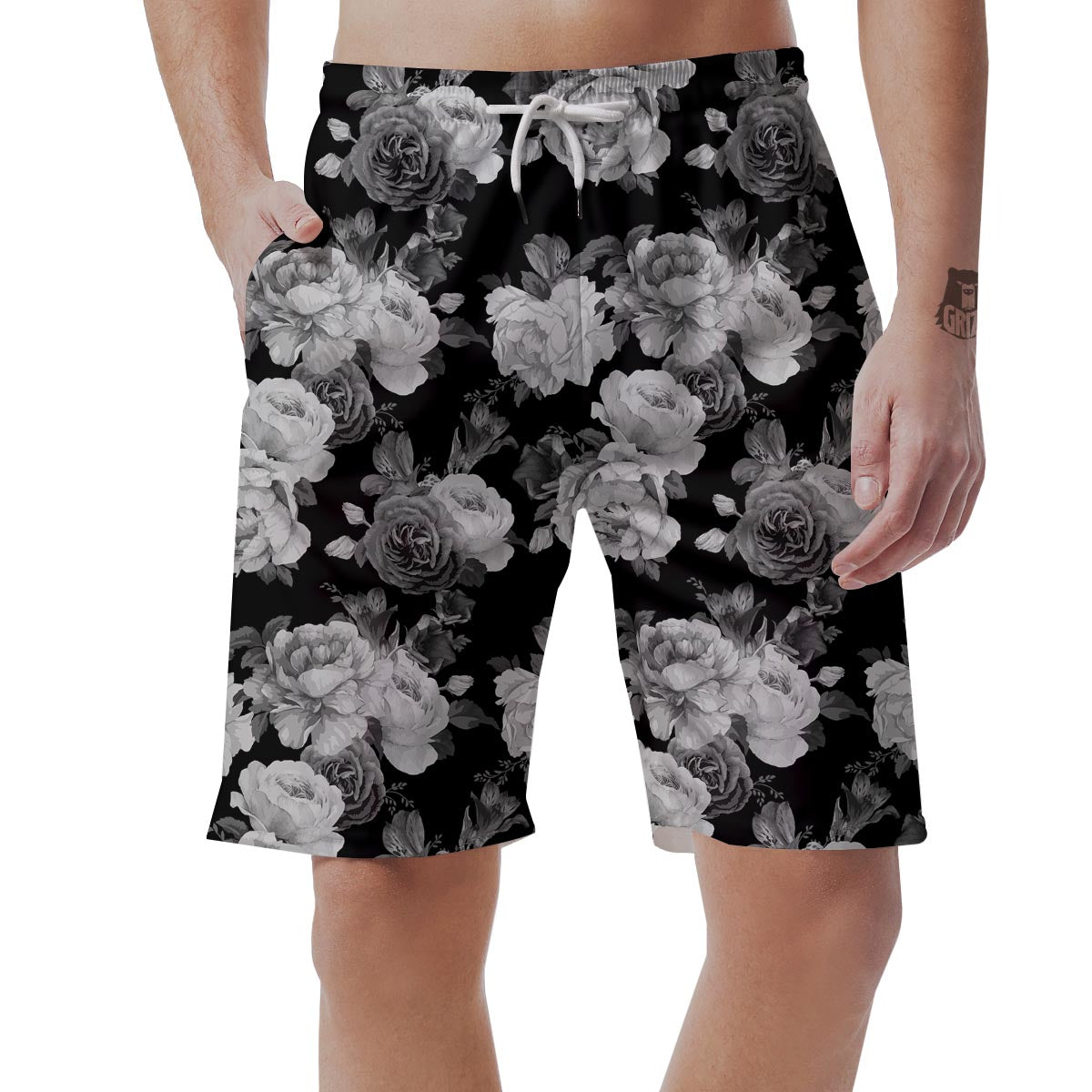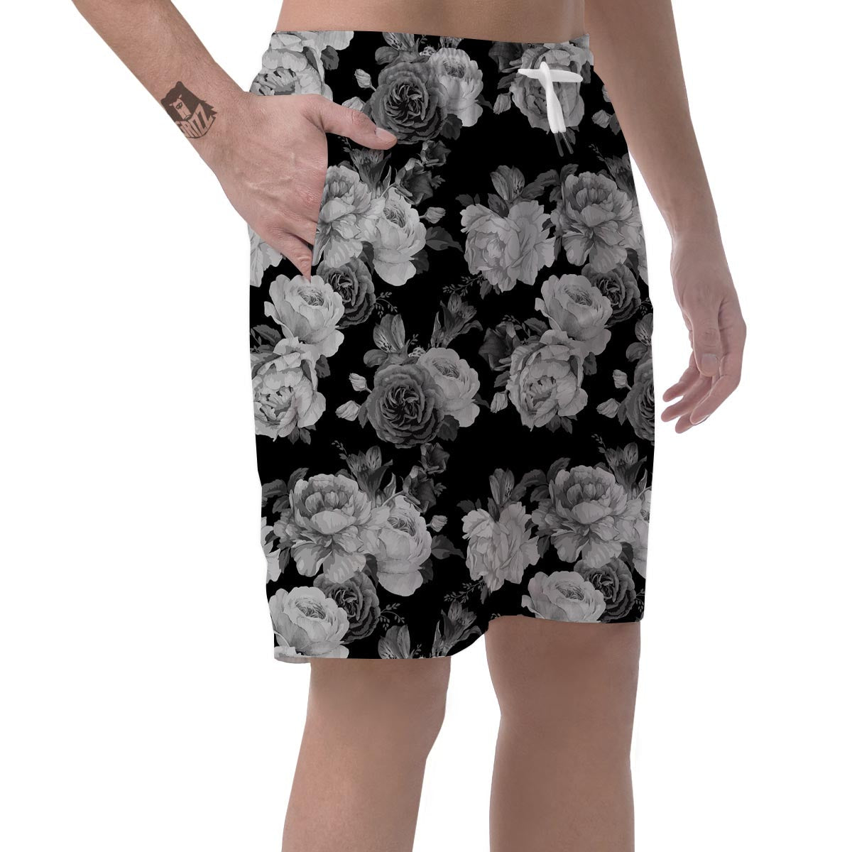 Monochrome Rose Floral Men's Shorts-grizzshopMonochrome Rose Floral Men's Shorts-grizzshop