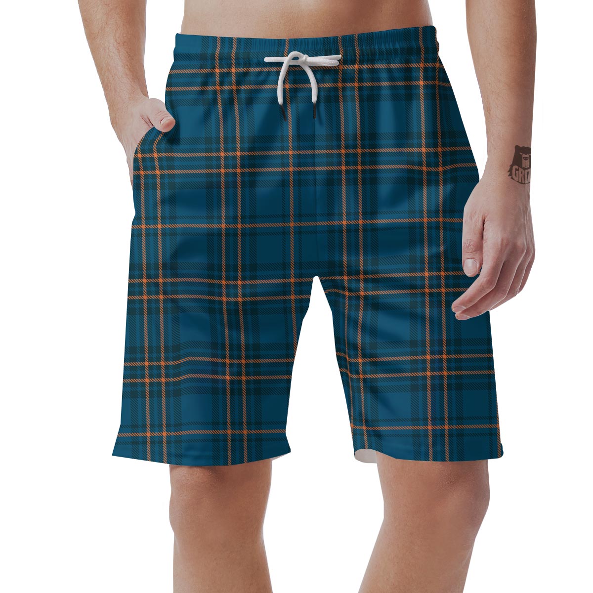 Navy Blue Plaid Tartan Men's Shorts-grizzshopNavy Blue Plaid Tartan Men's Shorts-grizzshop