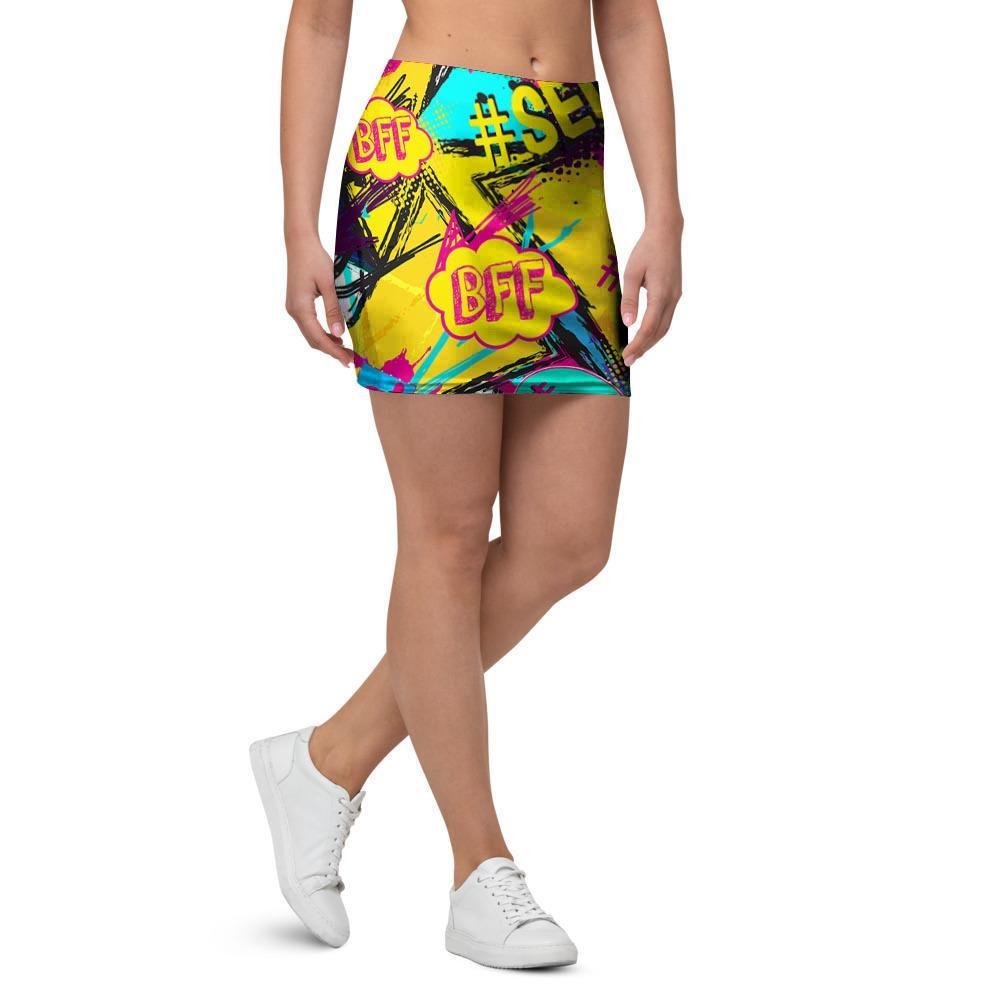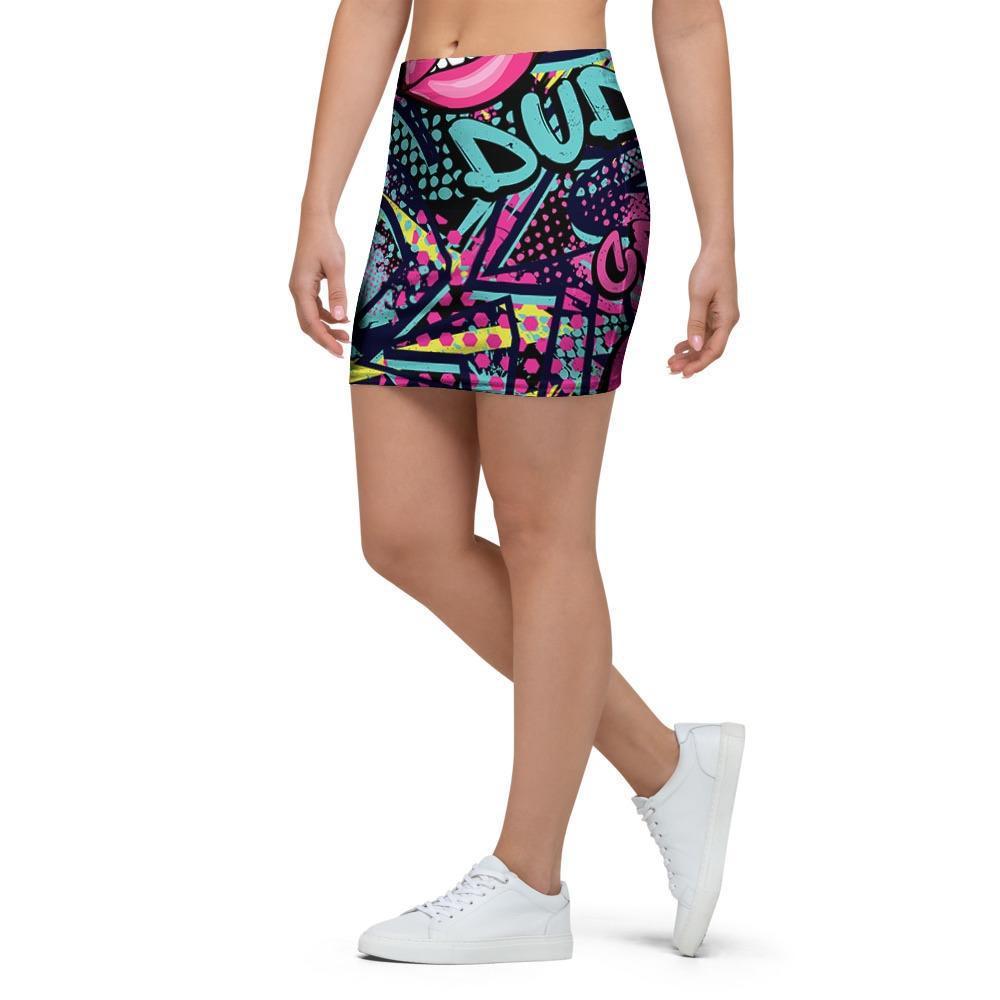Abstract Comic Bubble Graffiti Print Mini Skirt-grizzshopAbstract Comic Bubble Graffiti Print Mini Skirt-grizzshop