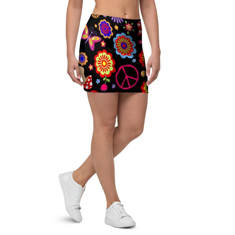 Abstract Flower Hippie Mini Skirt-grizzshopAbstract Flower Hippie Mini Skirt-grizzshop
