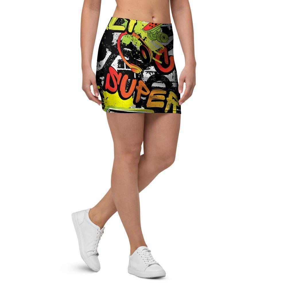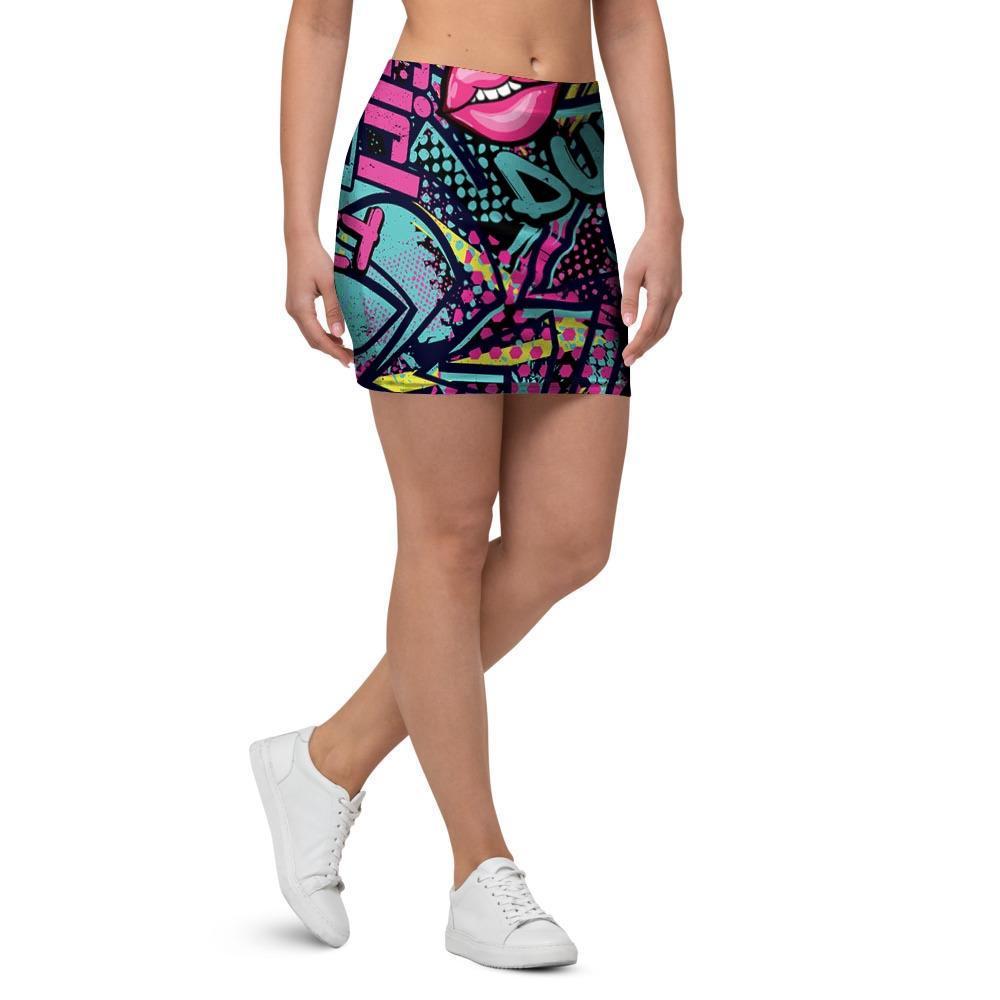 Abstract Graffiti Hiphop Lip Mini Skirt-grizzshopAbstract Graffiti Hiphop Lip Mini Skirt-grizzshop