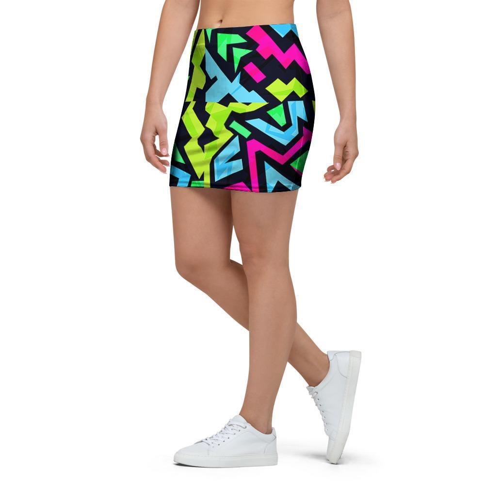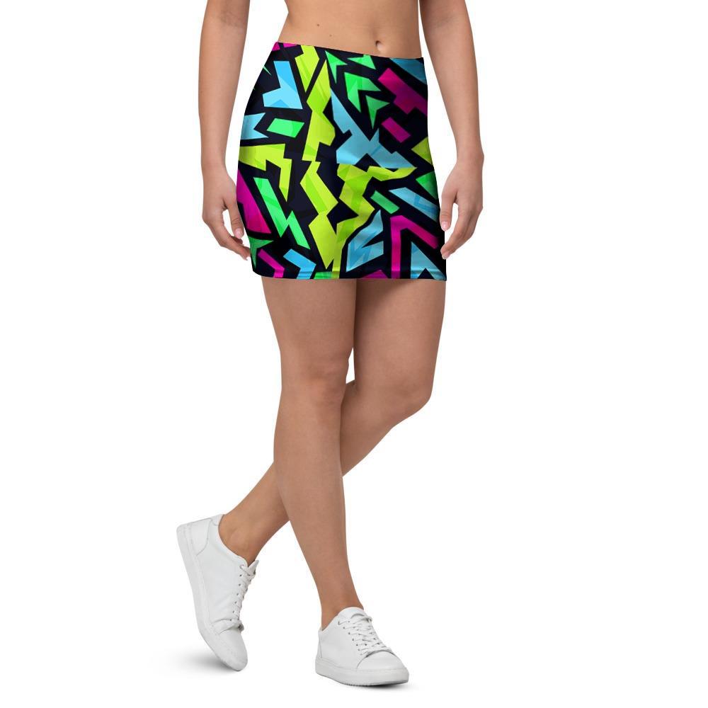 Abstract Graffiti Geometric Mini Skirt-grizzshopAbstract Graffiti Geometric Mini Skirt-grizzshop
