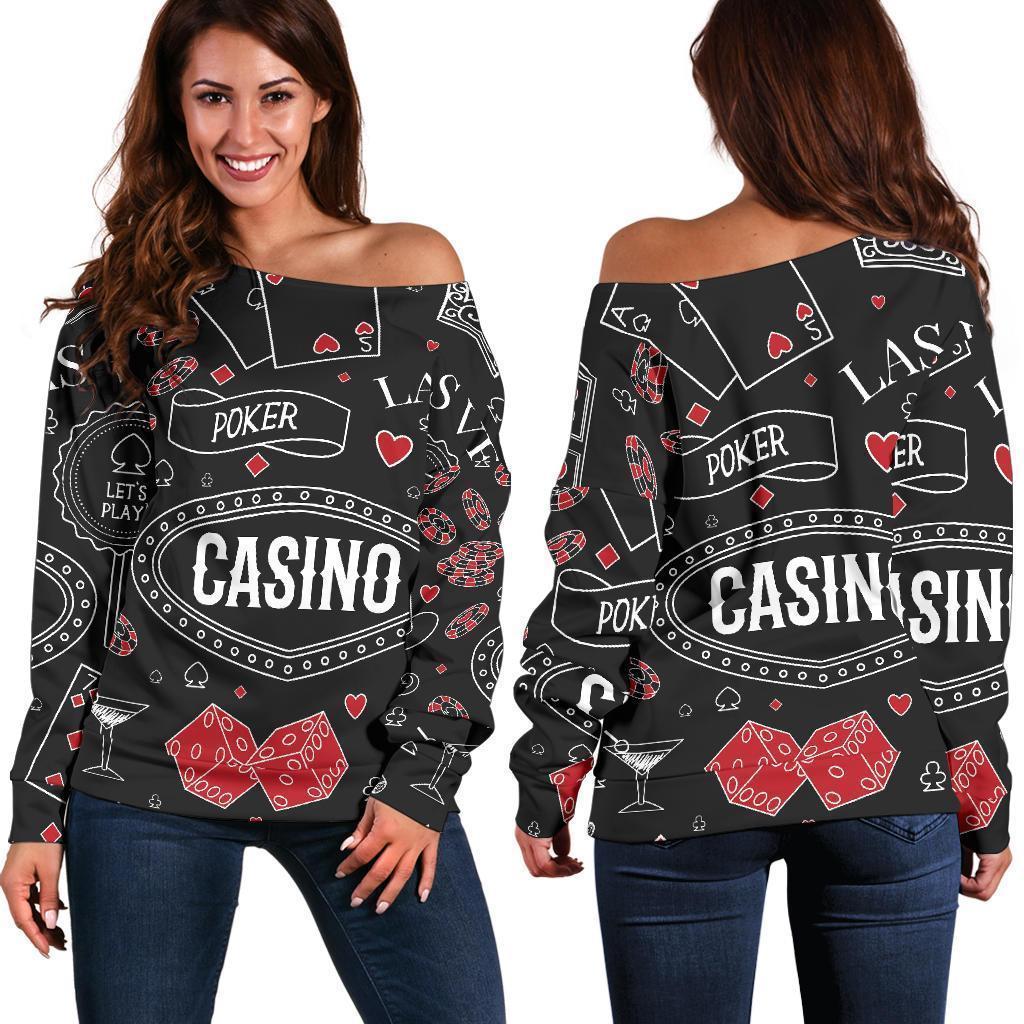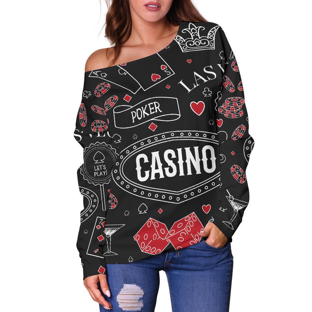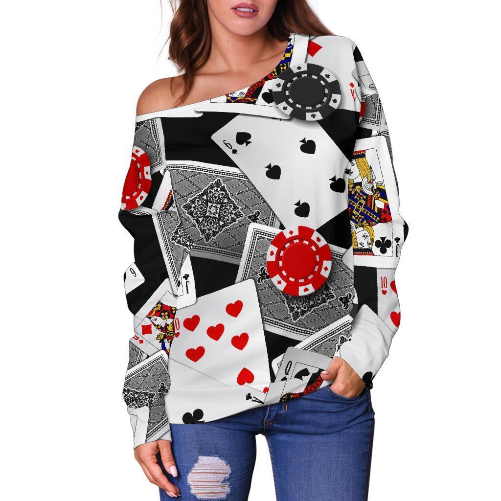 Casino Poker Pattern Print Women Off Shoulder Sweatshirt-grizzshopCasino Poker Pattern Print Women Off Shoulder Sweatshirt-grizzshop