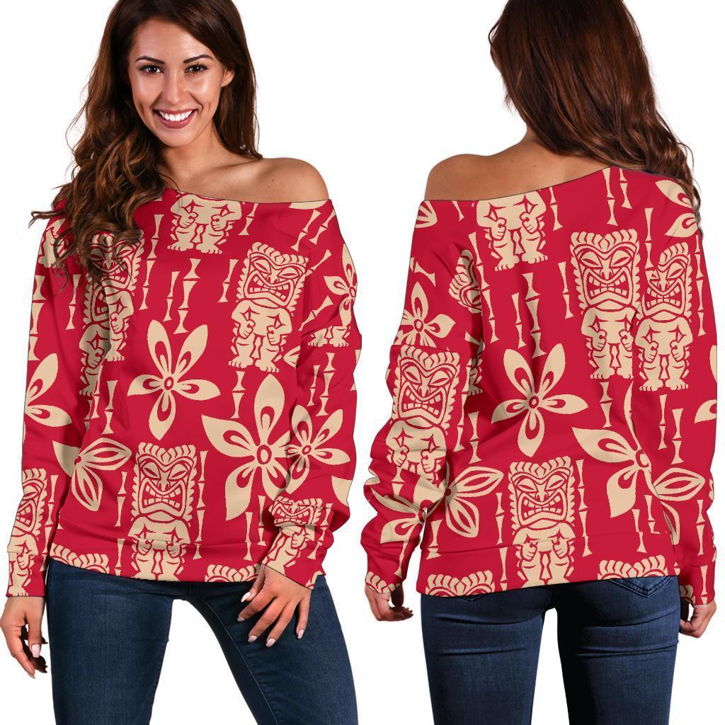 Tiki Hawaiian Pattern Print Women Off Shoulder Sweatshirt-grizzshopTiki Hawaiian Pattern Print Women Off Shoulder Sweatshirt-grizzshop