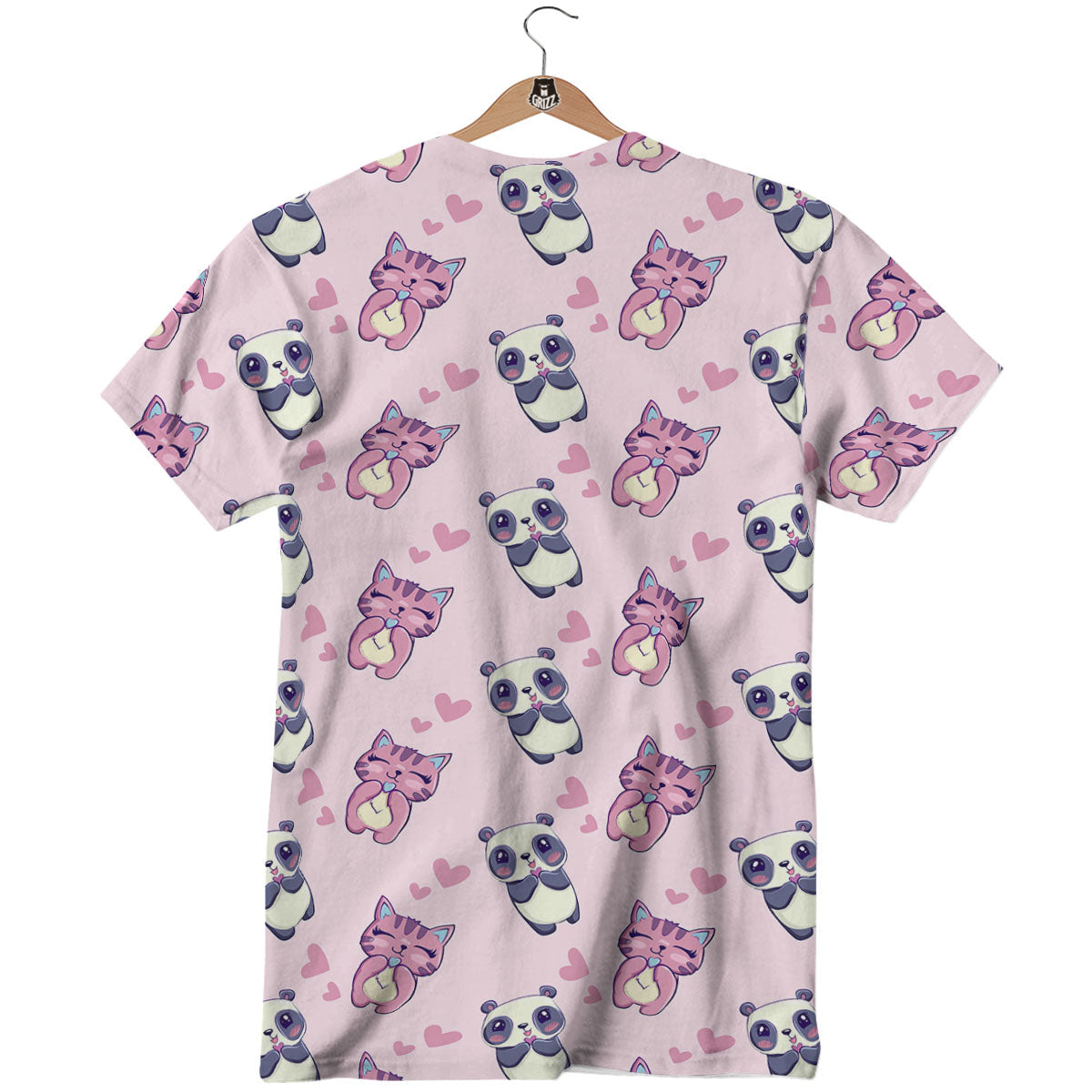 Cat And Panda Lover Print Pattern T-Shirt-grizzshopCat And Panda Lover Print Pattern T-Shirt-grizzshop