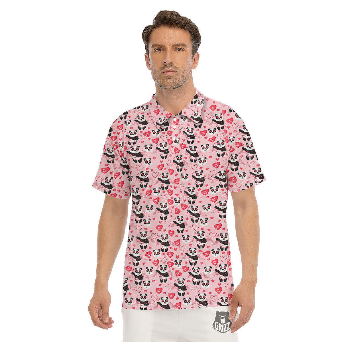 Cupid Valentine Cute Panda Print Pattern Men's Golf Shirts-grizzshopCupid Valentine Cute Panda Print Pattern Men's Golf Shirts-grizzshop