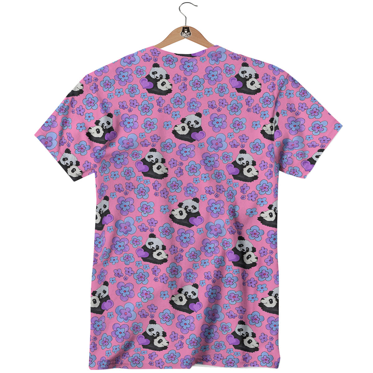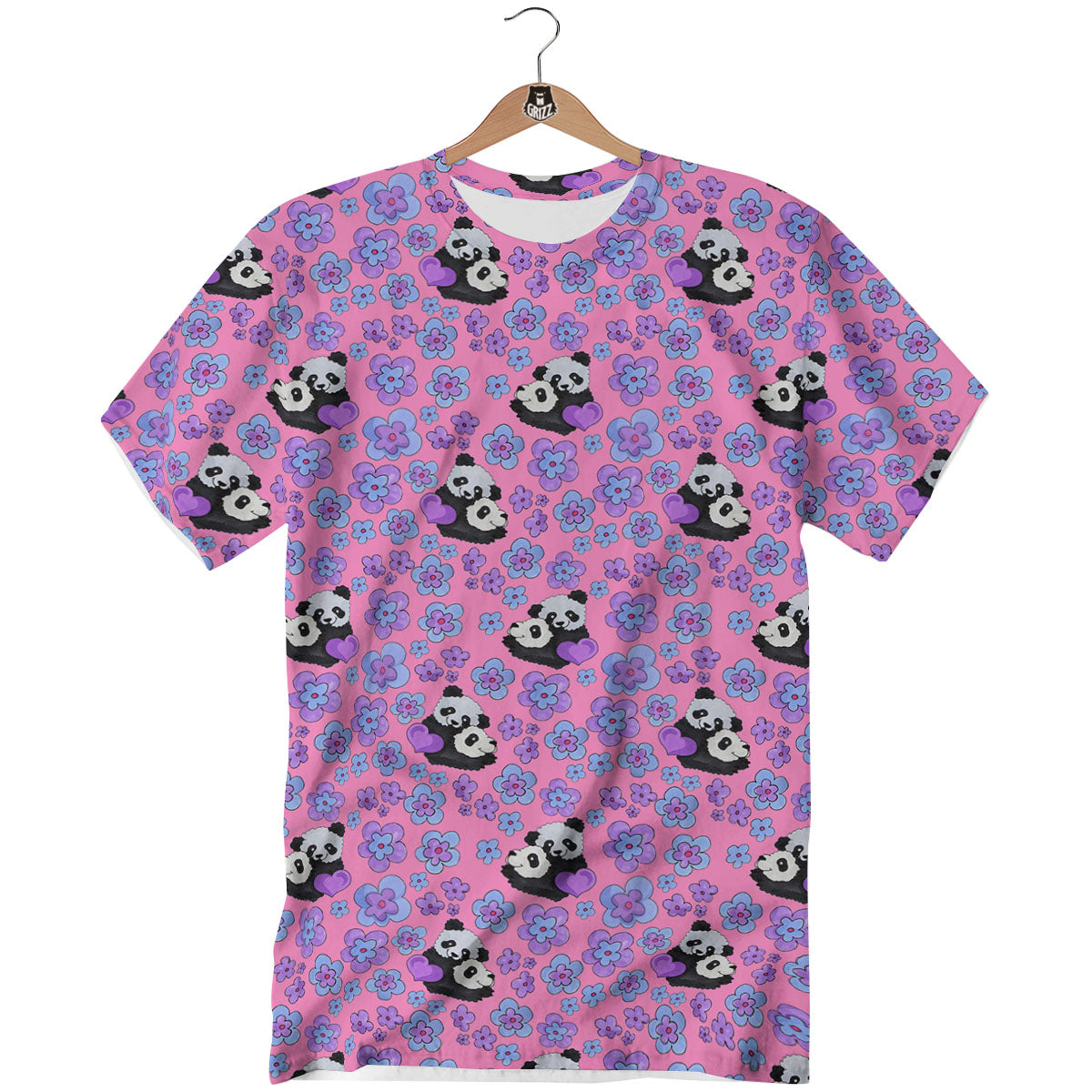 Flower And Purple Panda Print Pattern T-Shirt-grizzshopFlower And Purple Panda Print Pattern T-Shirt-grizzshop