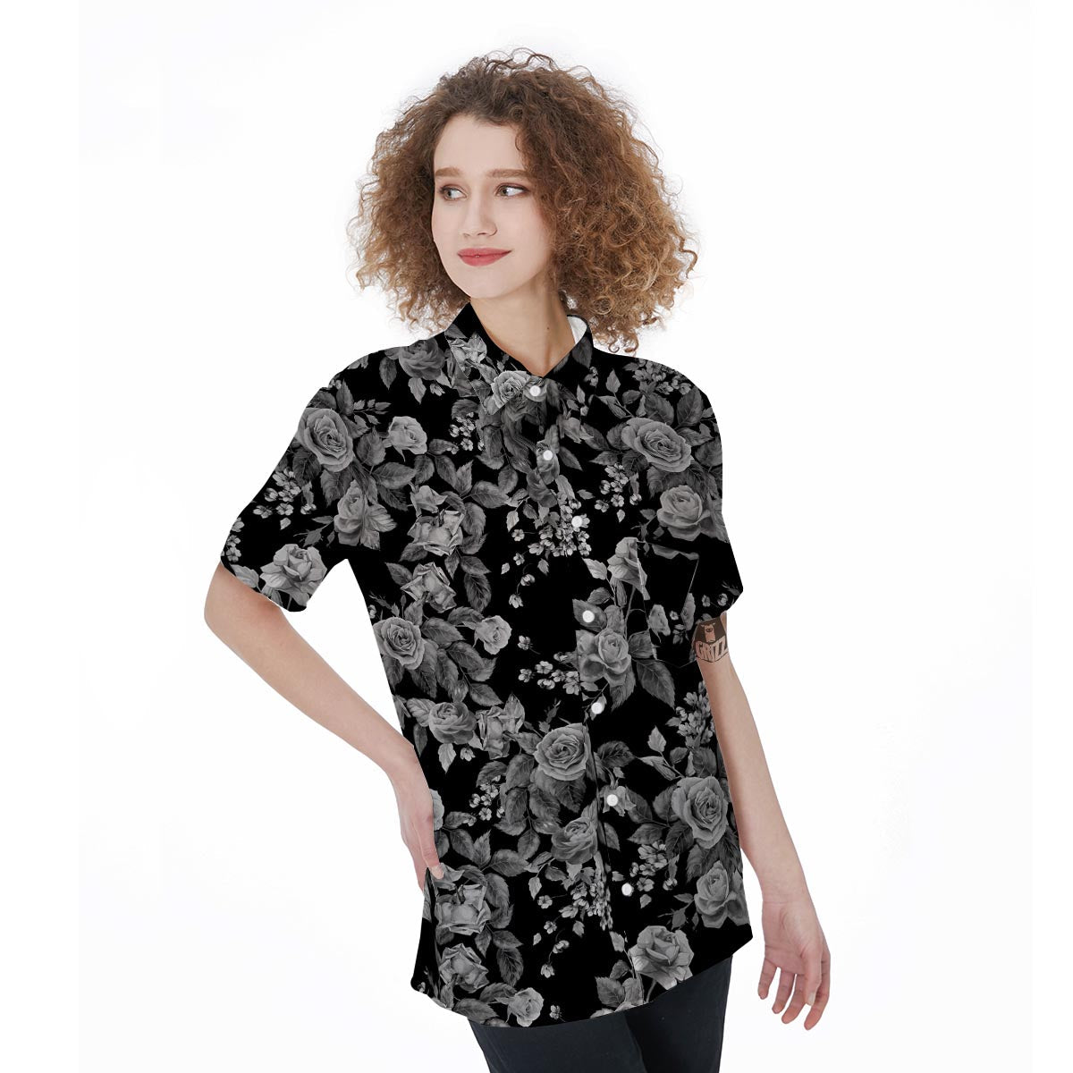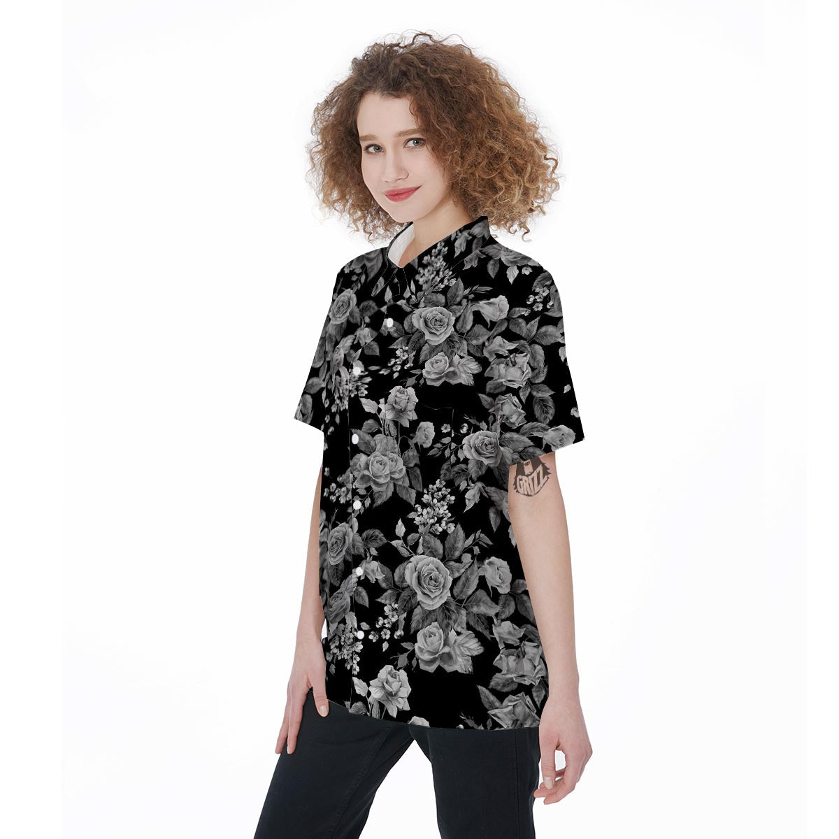 Black And White Rose Flower Women's Short Sleeve Shirts-grizzshopBlack And White Rose Flower Women's Short Sleeve Shirts-grizzshop