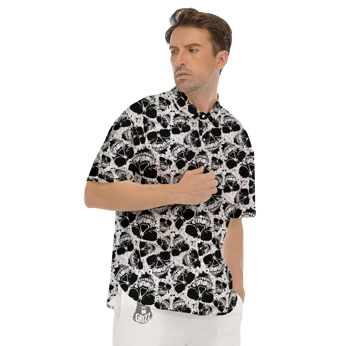 Black And White Skull Grunge Print Pattern Men's Short Sleeve Shirts-grizzshopBlack And White Skull Grunge Print Pattern Men's Short Sleeve Shirts-grizzshop