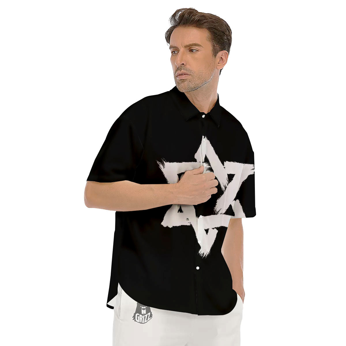 Black And White Star of David Print Men's Short Sleeve Shirts-grizzshopBlack And White Star of David Print Men's Short Sleeve Shirts-grizzshop