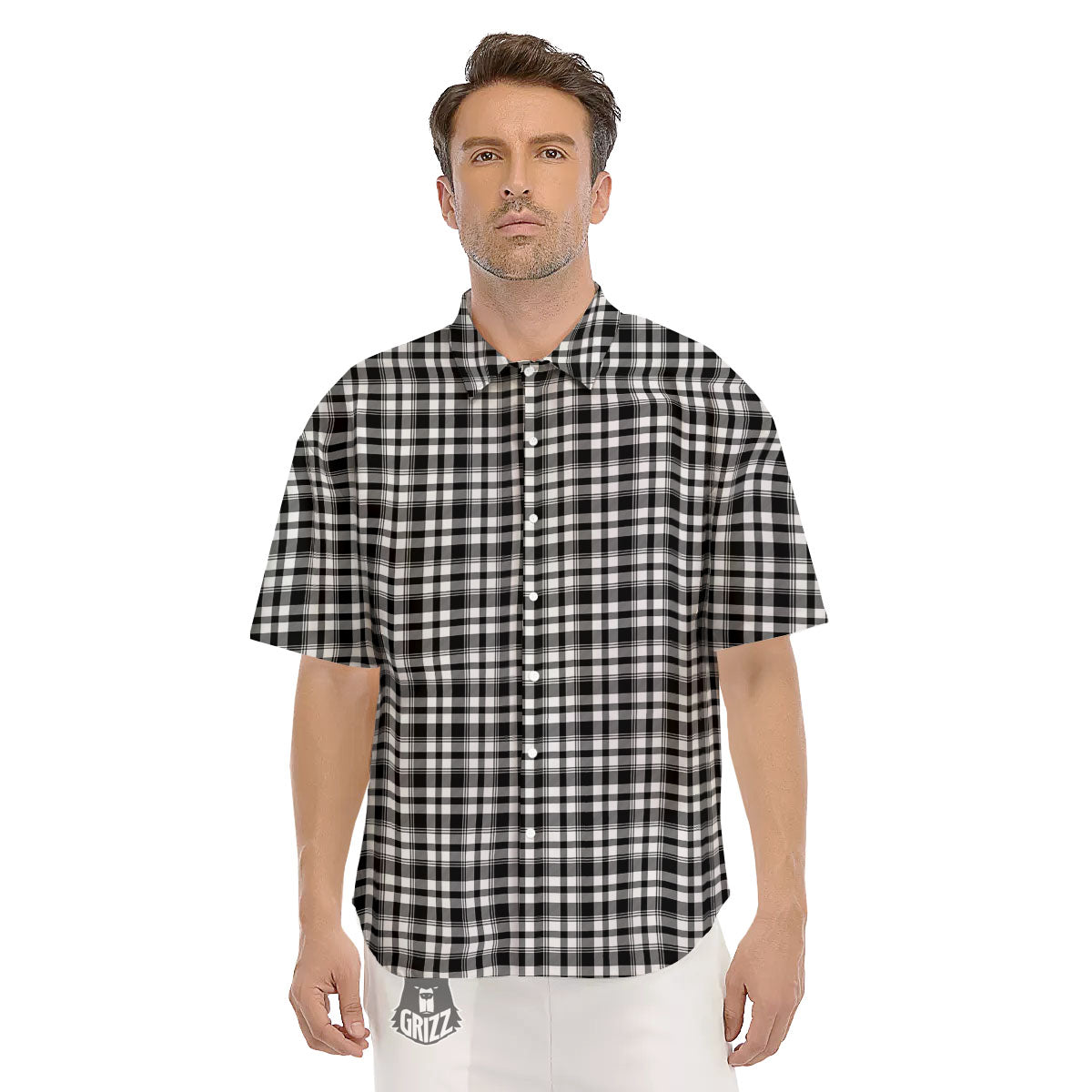 Black And White Tartan Print Pattern Men's Short Sleeve Shirts-grizzshopBlack And White Tartan Print Pattern Men's Short Sleeve Shirts-grizzshop
