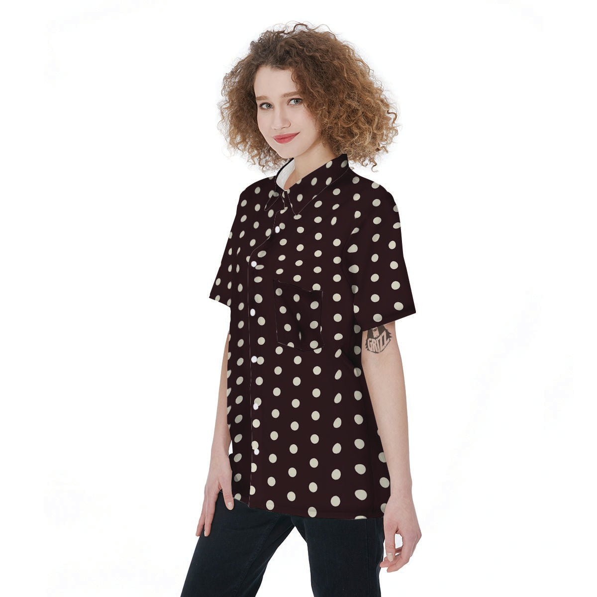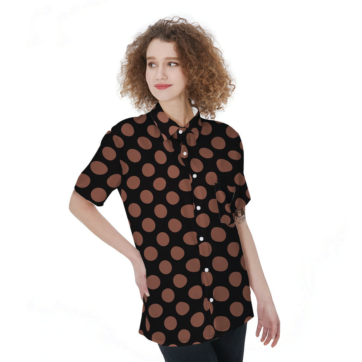 Black Brown Polka Dot Women's Short Sleeve Shirts-grizzshopBlack Brown Polka Dot Women's Short Sleeve Shirts-grizzshop