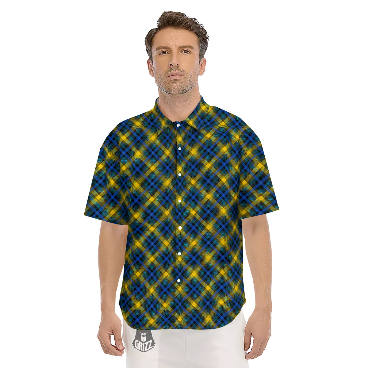 Black Argyle And Blue Yellow Print Pattern Men's Short Sleeve Shirts-grizzshopBlack Argyle And Blue Yellow Print Pattern Men's Short Sleeve Shirts-grizzshop