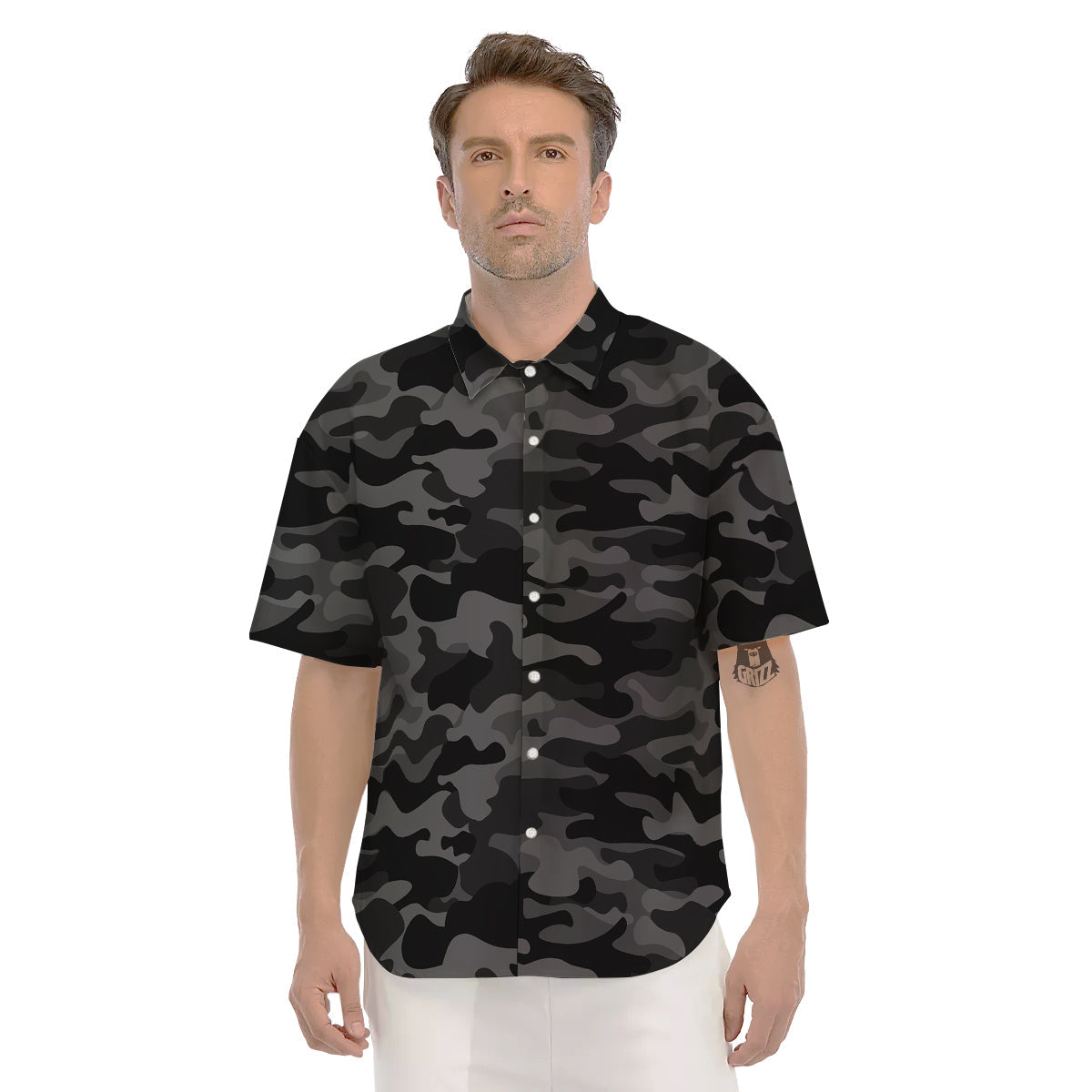 Black Camo And Camouflage Print Men's Short Sleeve Shirts-grizzshopBlack Camo And Camouflage Print Men's Short Sleeve Shirts-grizzshop