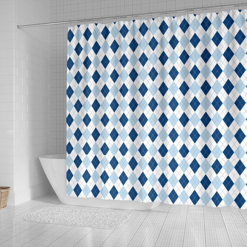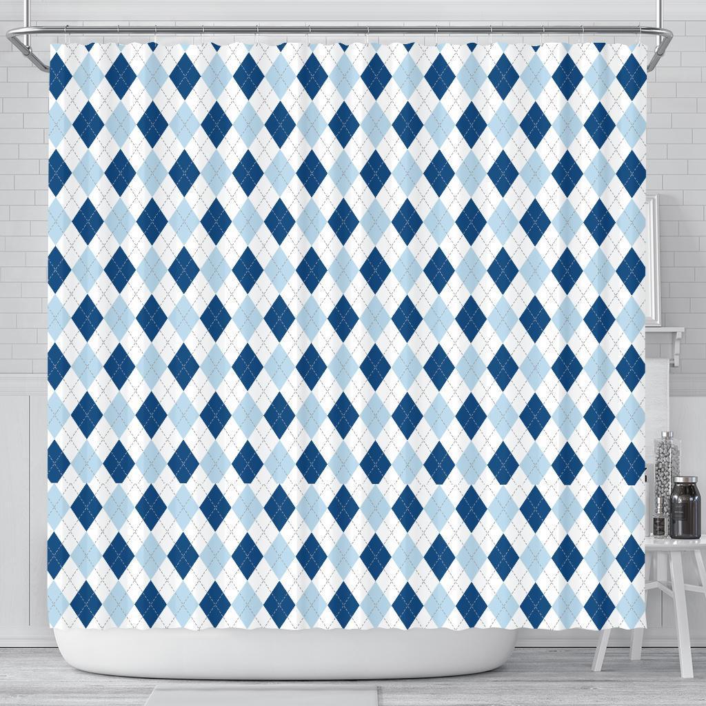 Argyle Blue Pattern Print Bathroom Shower Curtain-grizzshopArgyle Blue Pattern Print Bathroom Shower Curtain-grizzshop