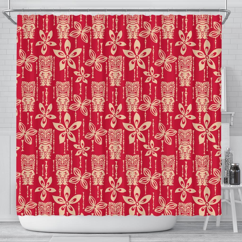 Tiki Hawaiian Pattern Print Bathroom Shower Curtain-grizzshopTiki Hawaiian Pattern Print Bathroom Shower Curtain-grizzshop