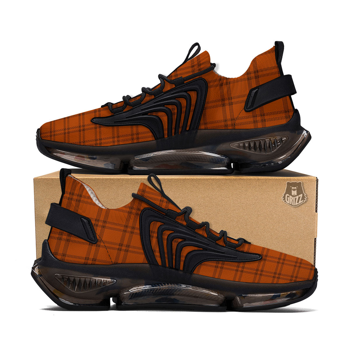 Tattersall Orange Print Pattern Black Gym Shoes-grizzshopTattersall Orange Print Pattern Black Gym Shoes-grizzshop