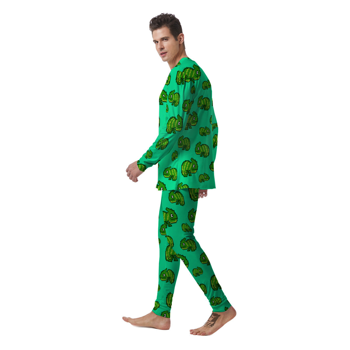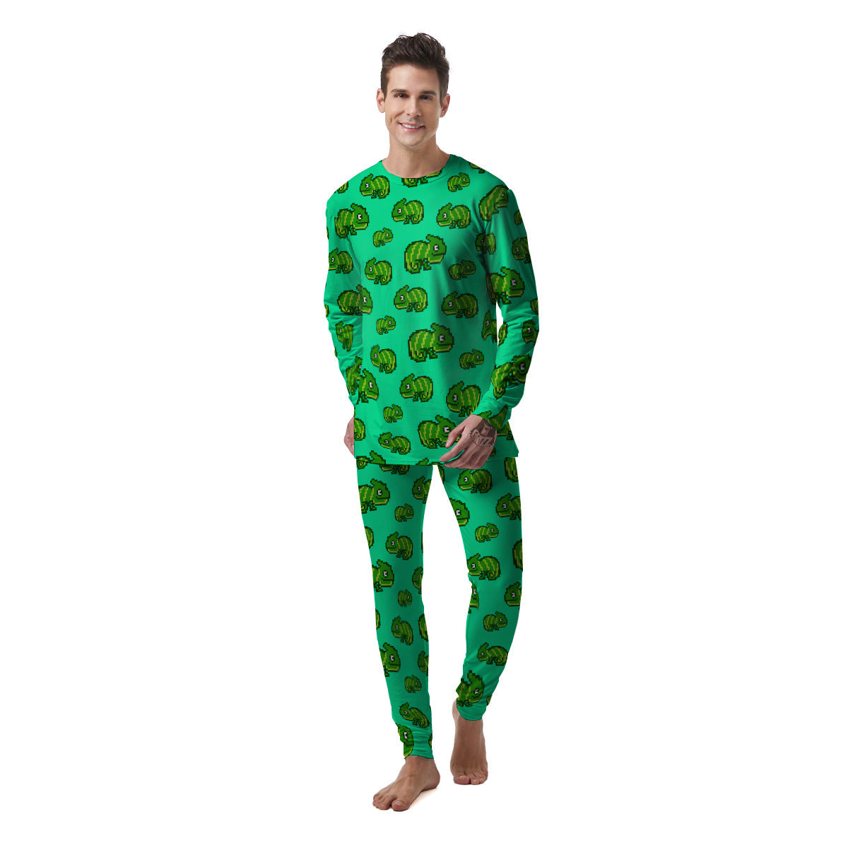 8 Bit Pixel Green Chameleons Print Pattern Men's Pajamas
