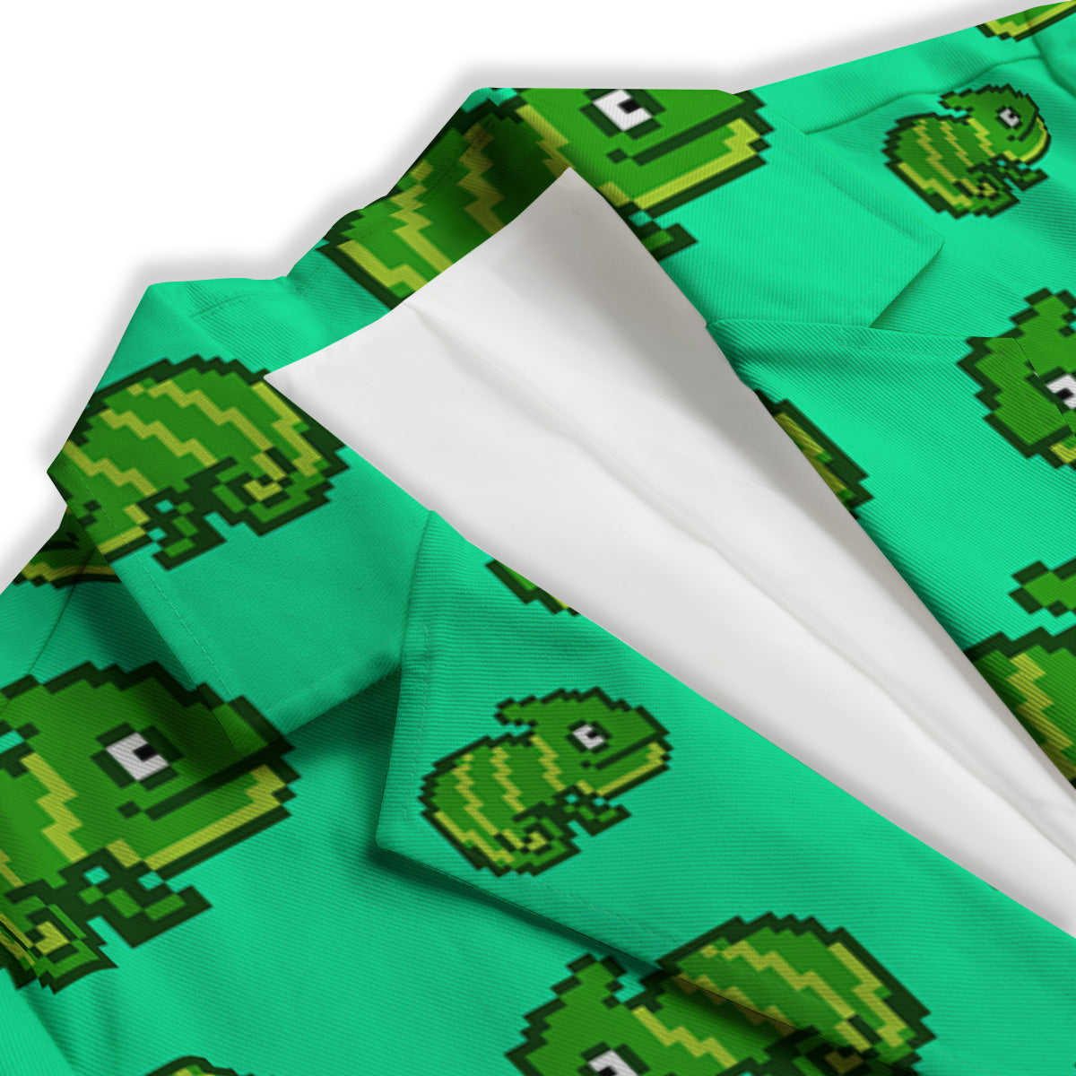 8 Bit Pixel Green Chameleons Print Pattern Women's Blazer
